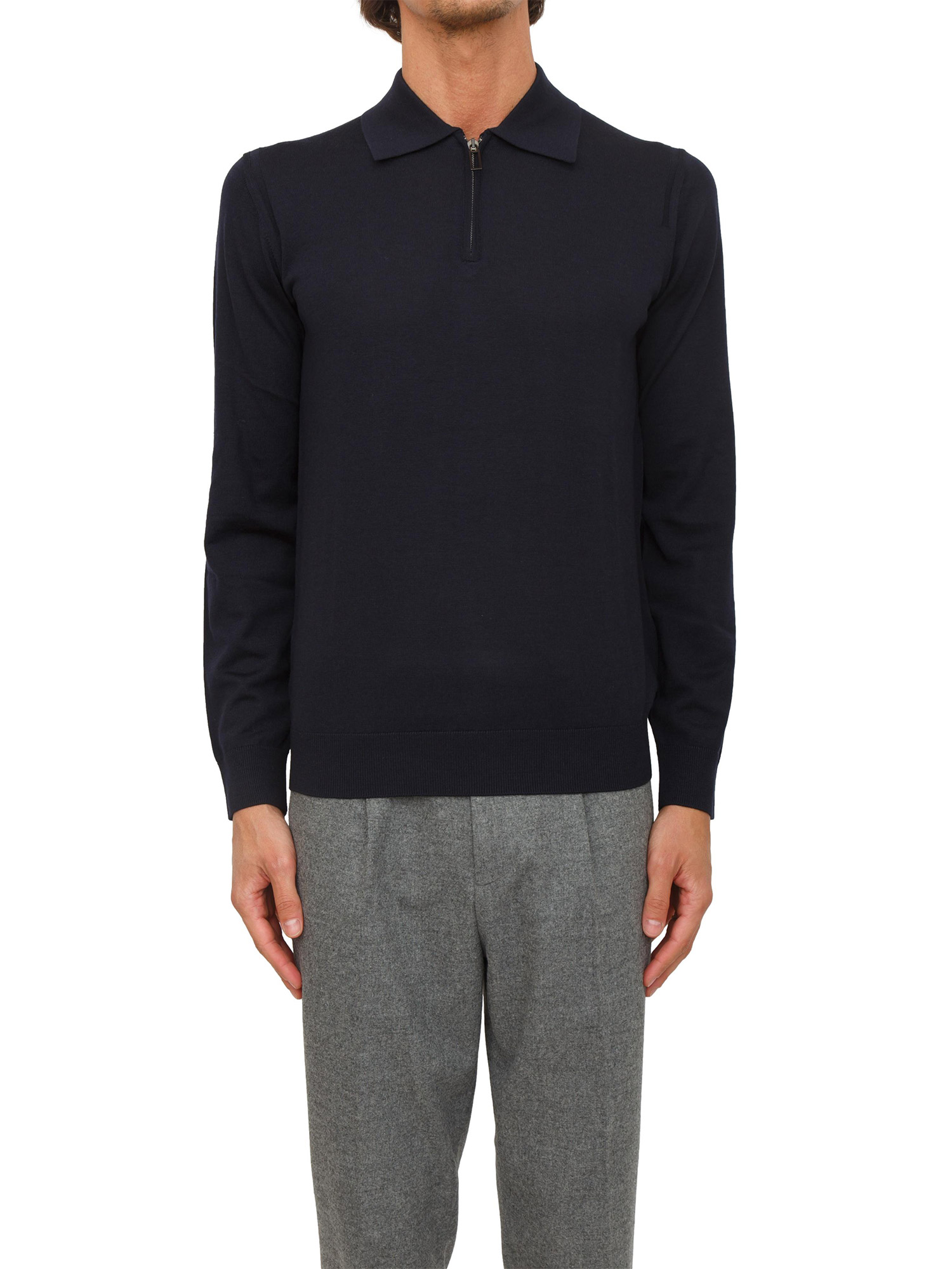 Maglia polo mezza zip Paolo Pecora in lana blu