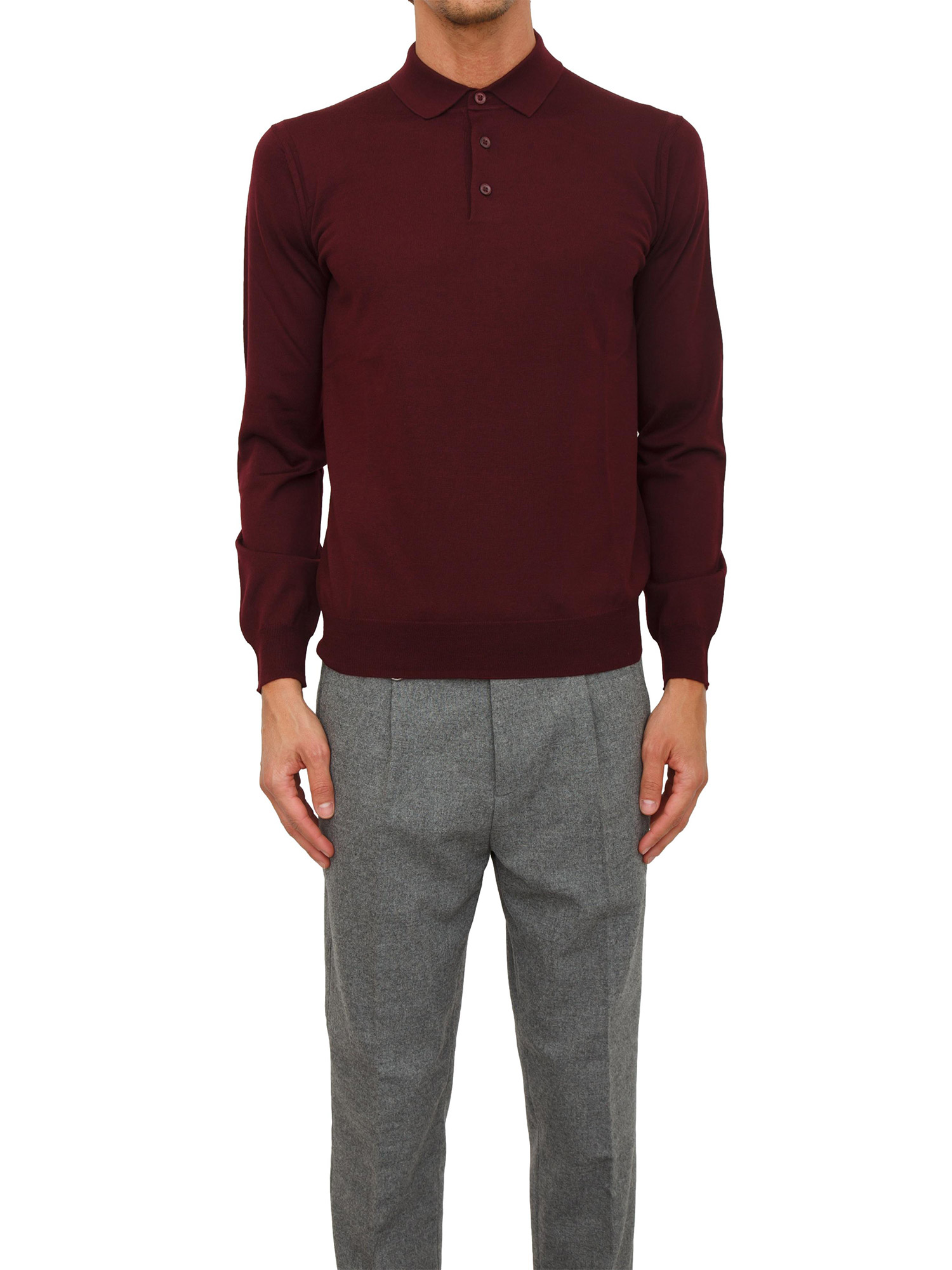 Maglia polo Paolo Pecora in lana merino bordeaux