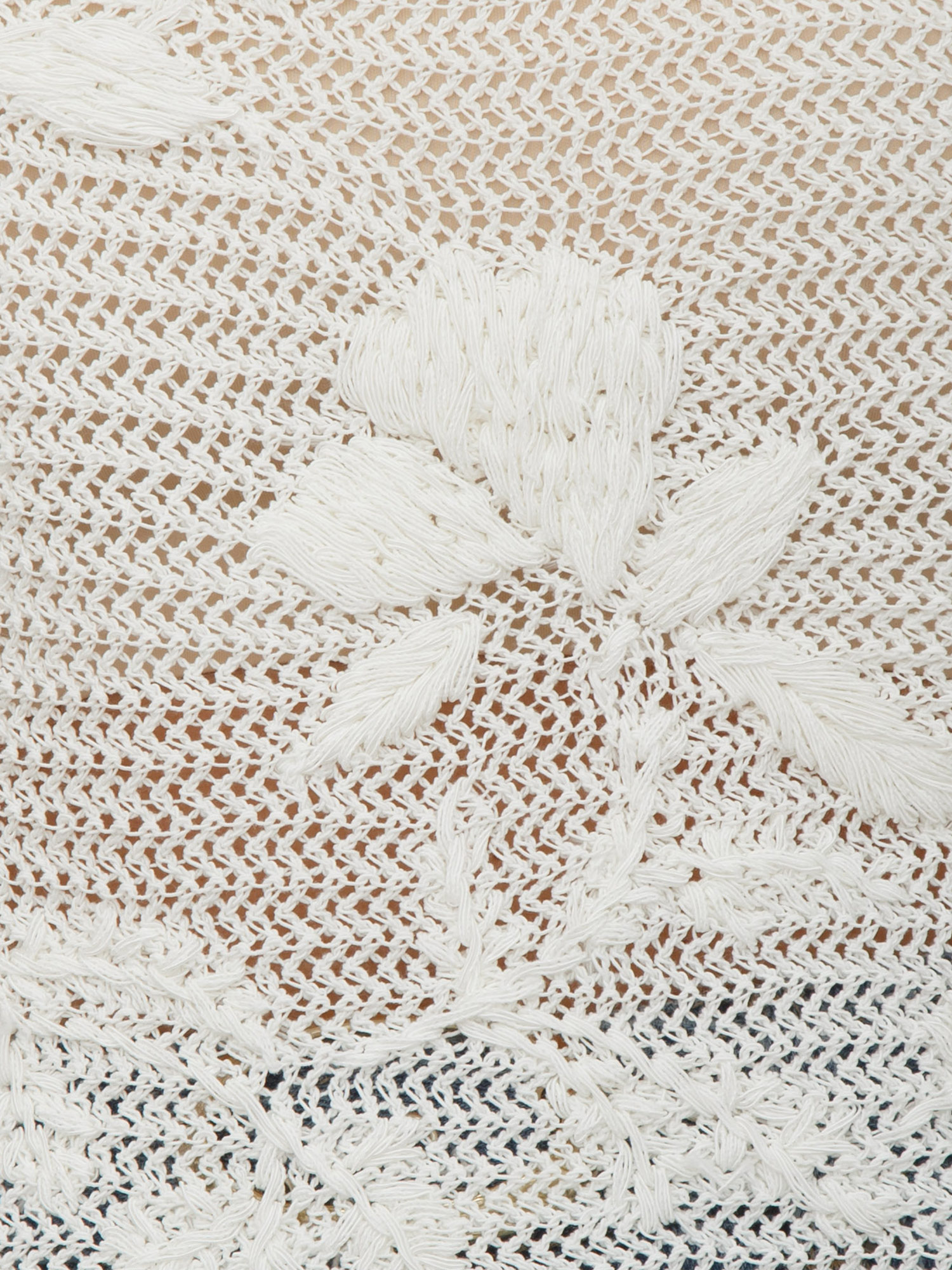 Maglia Twinset realizzata in misto cotone stretch con lavorazione a rete e ricamo floreale fatto a mano. Ha collo tondo, maniche lunghe con giro sceso, profili rifiniti a costine e linea morbida. Ispirata dai capi più iconici e amati delle collezioni Twinset. La modella è alta 1.72 e indossa la taglia S.