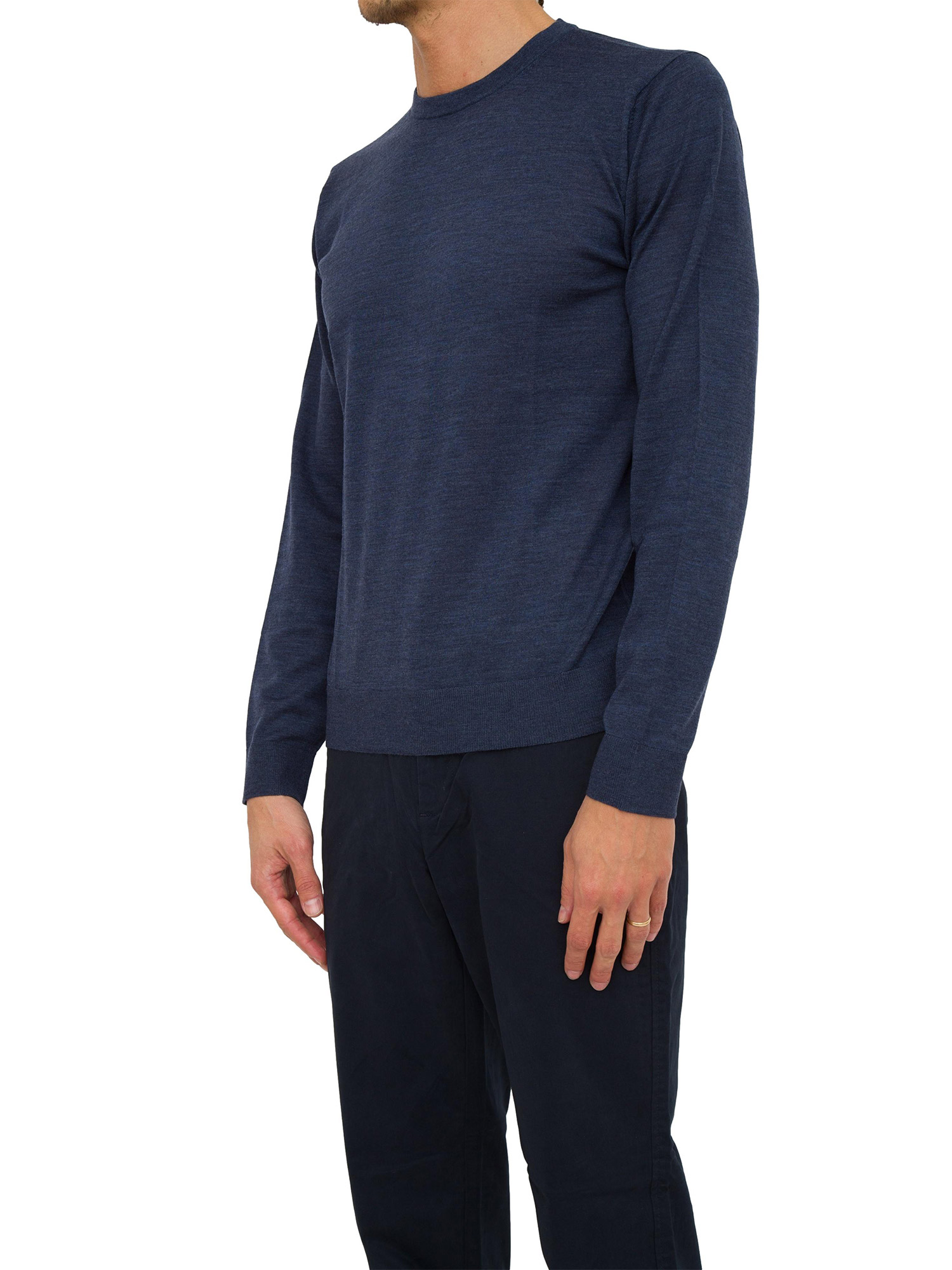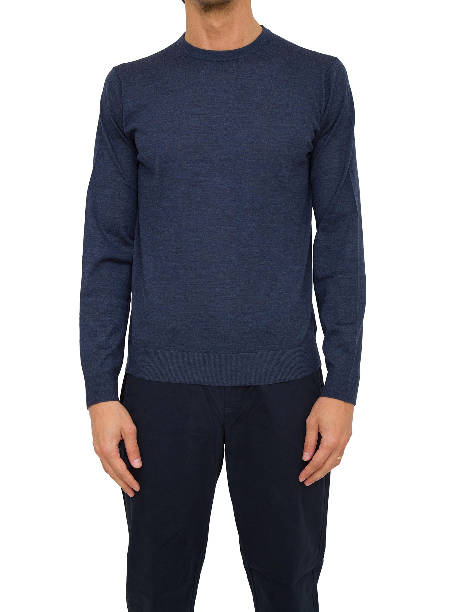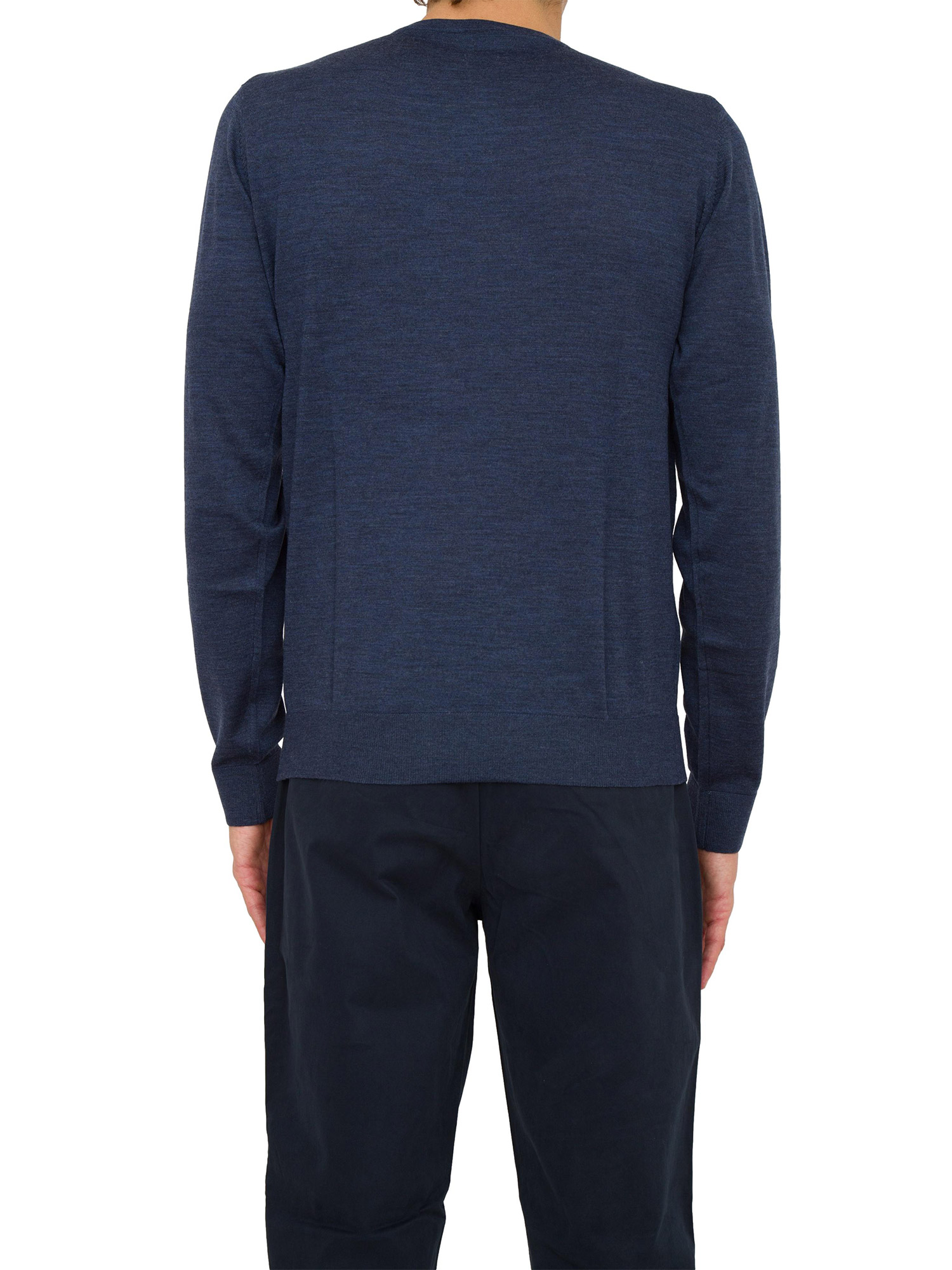 Maglia da uomo Corneliani realizzata in lana, maniche lunghe , girocollo e profili a costine.Il modello indossa la taglia 48.