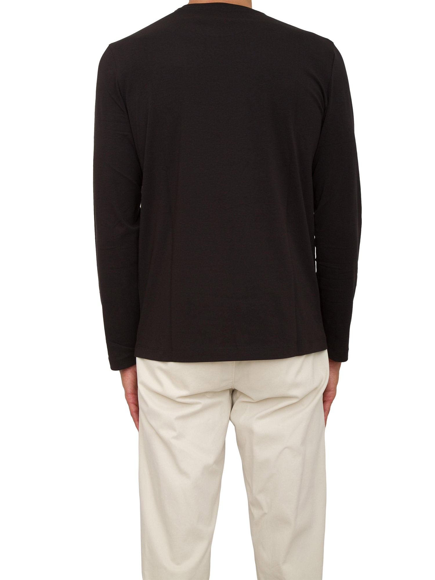 T-shirt girocollo a maniche lunghe in jersey stretch di cotone con logo stampato sul petto.
