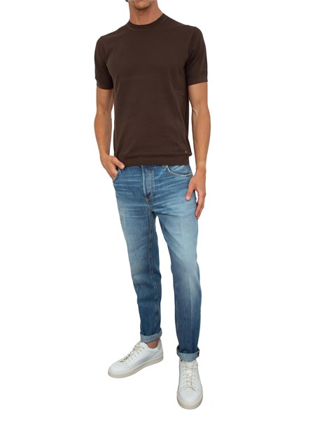 Maglia da uomo Paolo Pecora realizzata in cotone con manica corta e girocollo.Il modello è alto 1.90m e indossa la taglia L.