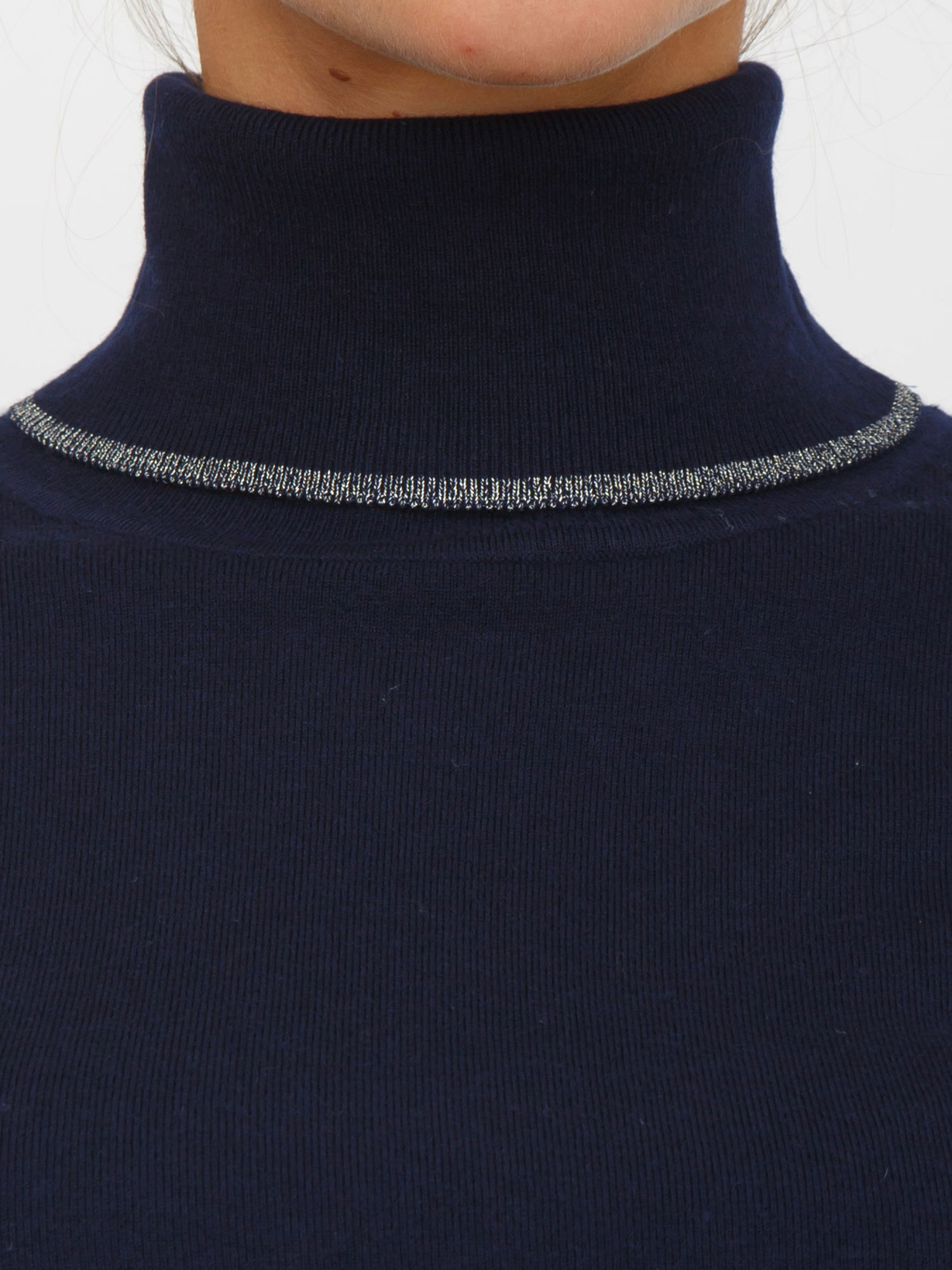 Piccoli dettagli in strass impreziosiscono il collo, i polsini e il bordo di questa maglia Kocca a collo alto, perfetta per regalare stile ed eleganza alle rigide giornate invernali. Il capo realizzato in misto viscosa presenta una vestibilità regolare. La modella è alta 1.72 e indossa la taglia S.