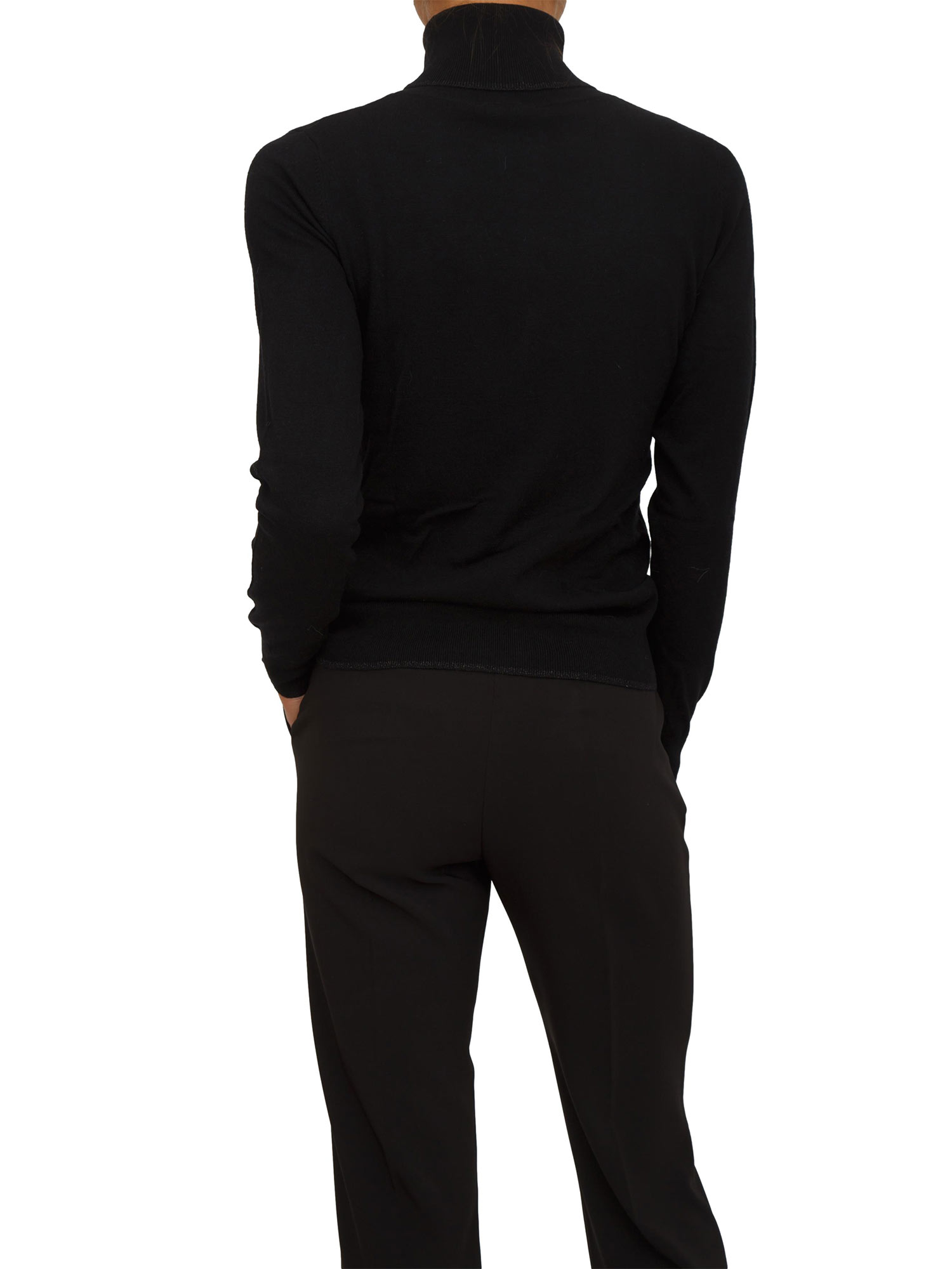 Piccoli dettagli in strass impreziosiscono il collo, i polsini e il bordo di questa maglia Kocca a collo alto, perfetta per regalare stile ed eleganza alle rigide giornate invernali. Il capo realizzato in misto viscosa presenta una vestibilità regolare. La modella è alta 1.72 e indossa la taglia S.