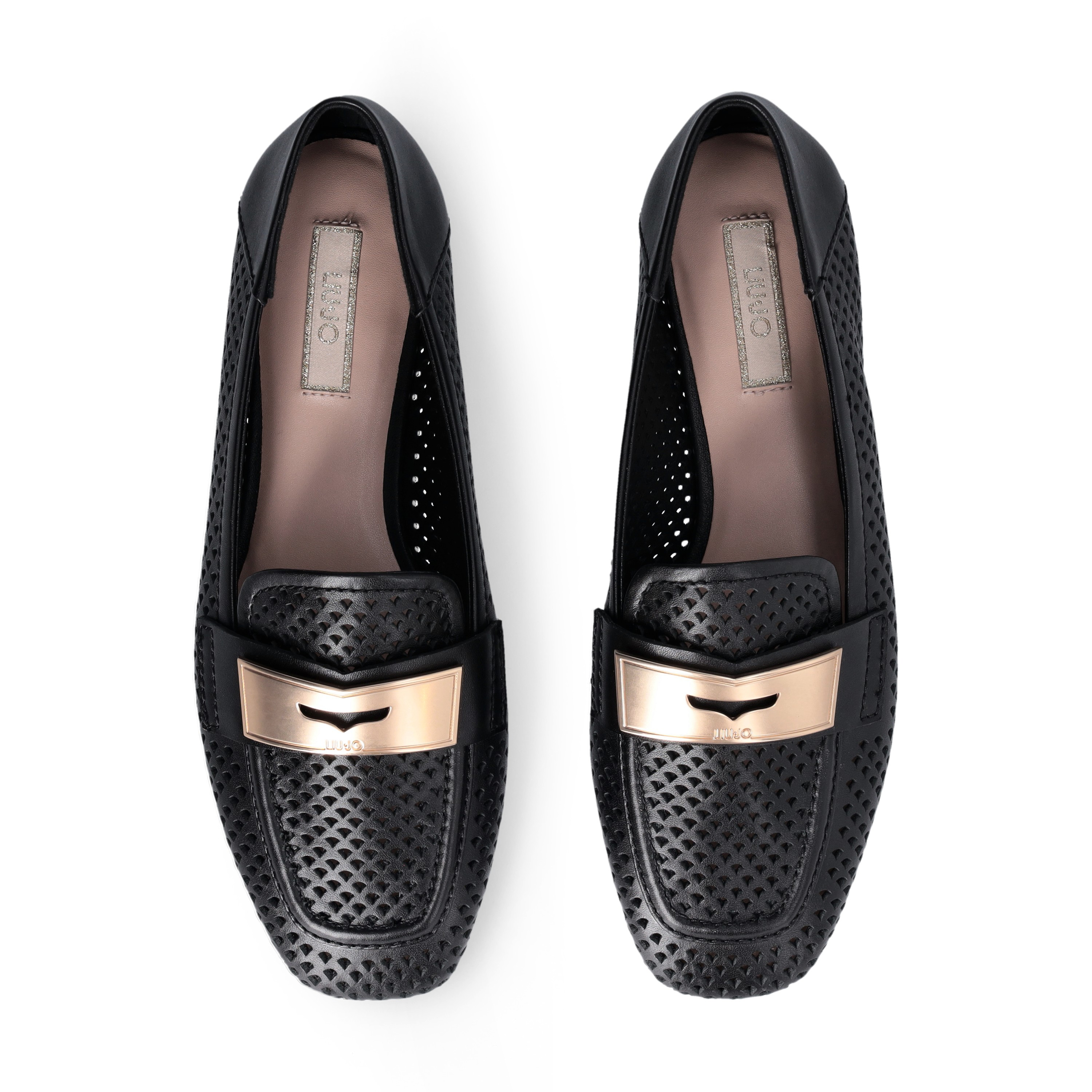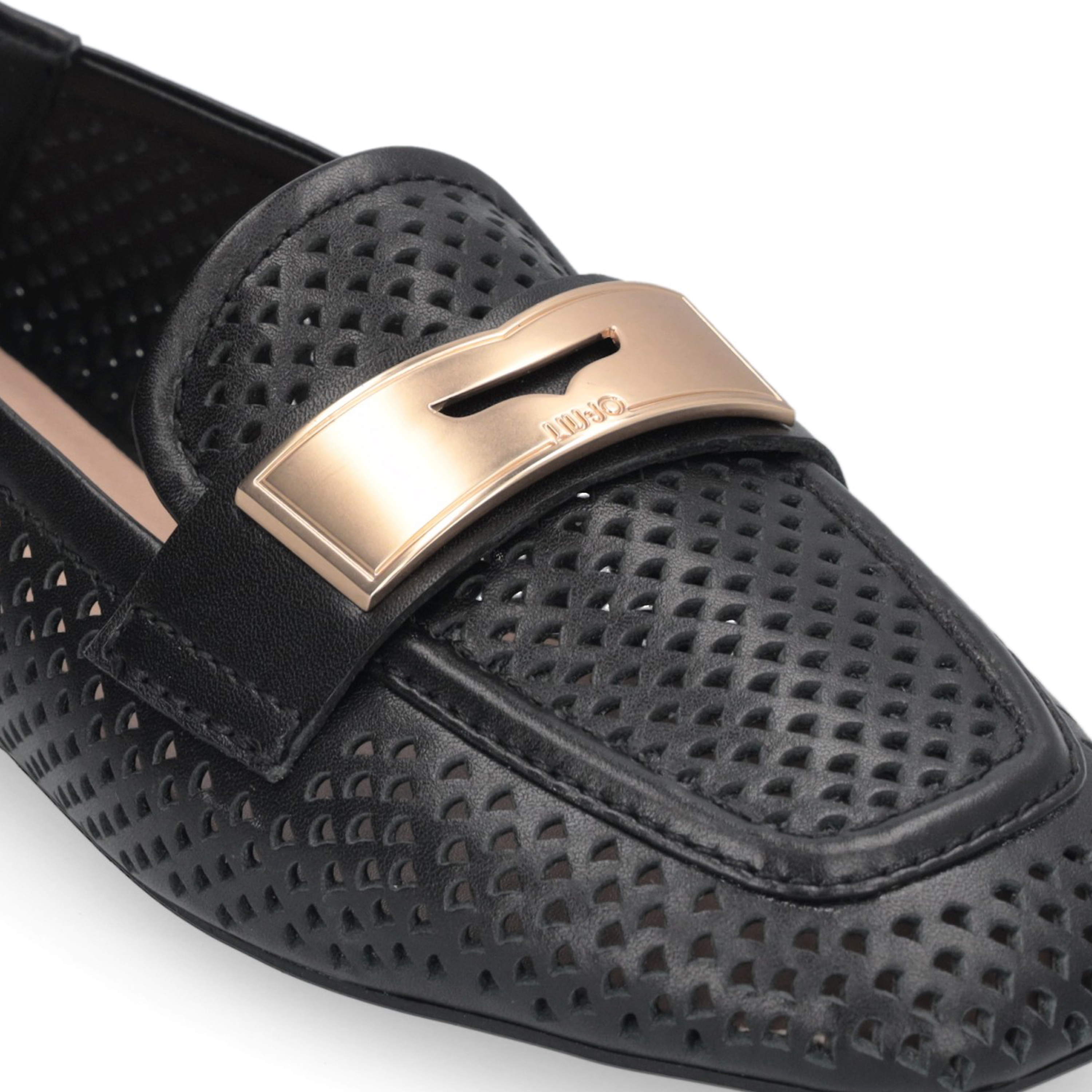 Mocassini Liu Jo donna realizzati in morbida pelle traforata con morsetto dorato con logo e suola flat. Altezza suola: 1 cm