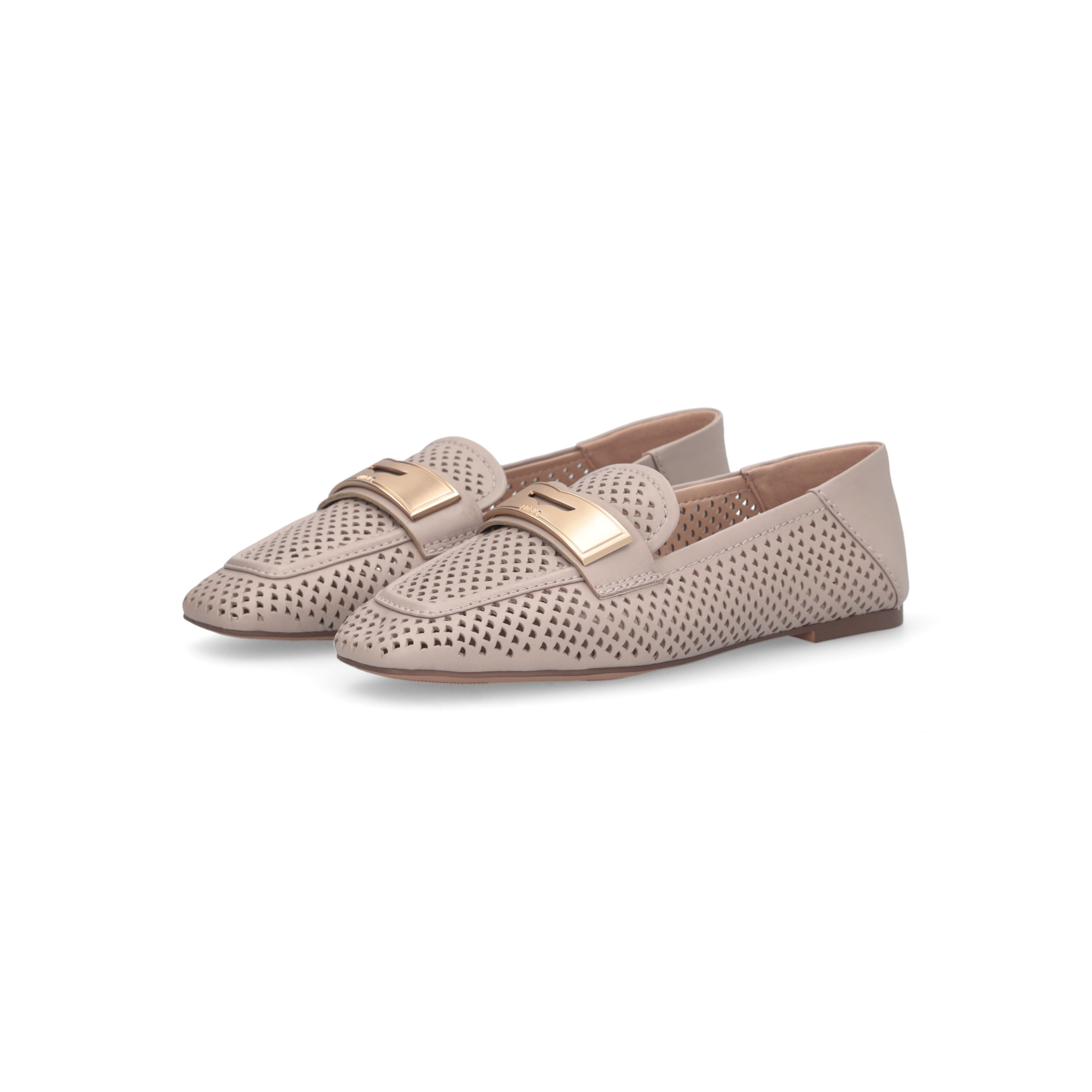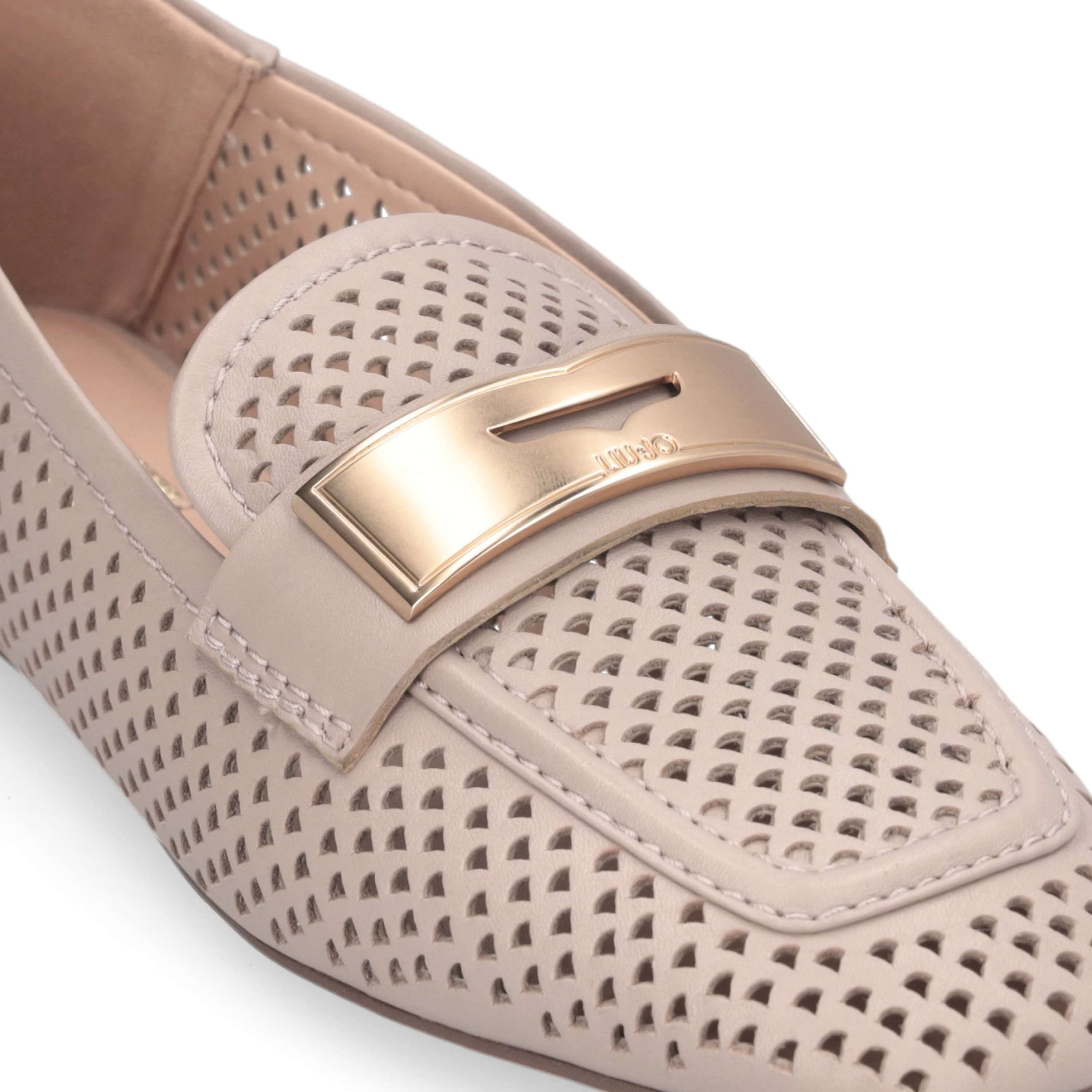 Mocassini Liu Jo donna realizzati in morbida pelle traforata con morsetto dorato con logo e suola flat. Altezza suola: 1 cm