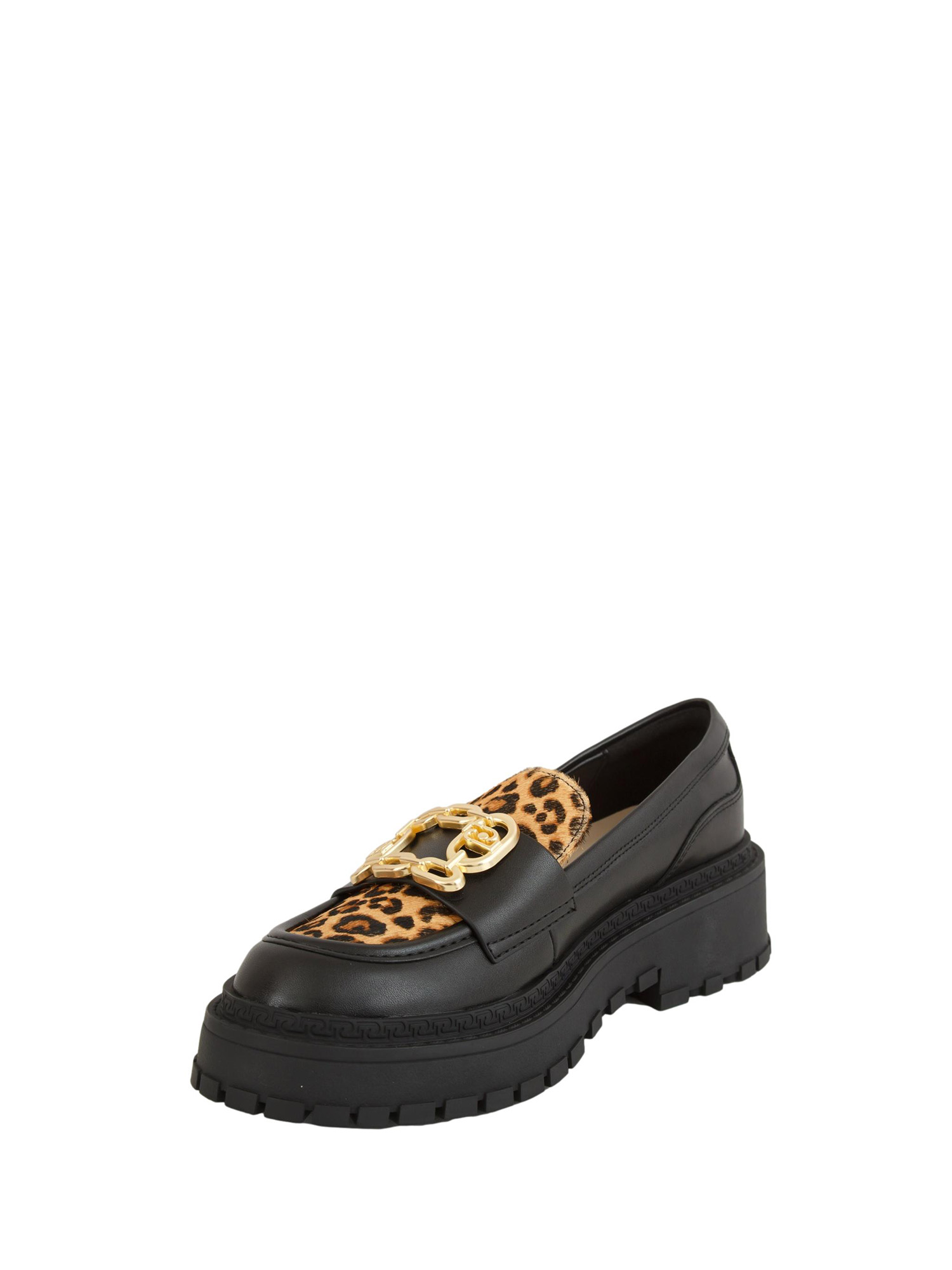 Mocassini Liu Jo donna Rumi 34 realizzati in pelle con inserto in cavallino animalier. Design con accessorio chain con logo, fondo con guardolo logato e battistrada dentellato. Altezza suola: 5 cm.