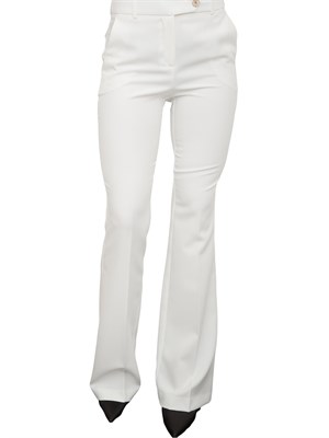 Pantalone regular a palazzo in tessuto stretch, vita regolare, tasche alla francese laterali, tasche a filetto sul retro e fondo largo.