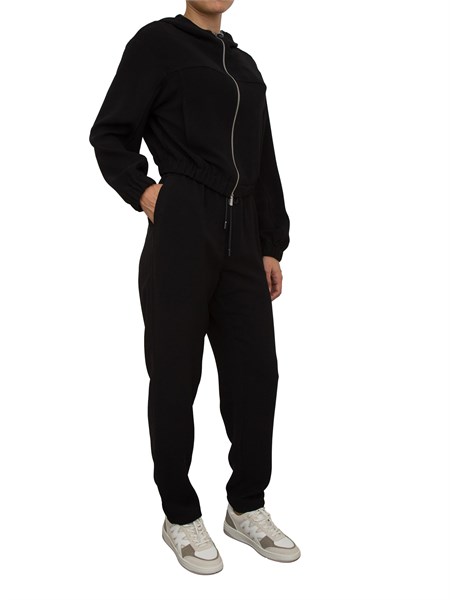 Pantalone Chino classico Liu-jo da donna realizzato in cotone con vita alta, spacco e scritta LIUJO.La modella è alta 1.72 e indossa la taglia 26.