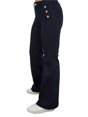Pantaloni blu Liu Jo modello bottom up flare con bottoni gioiello