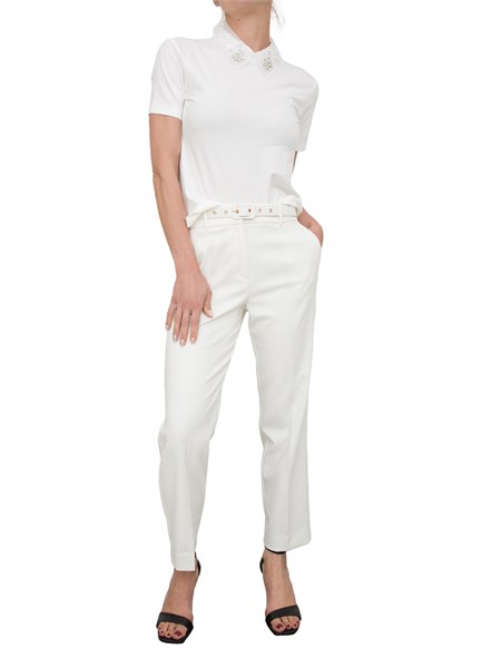 Pantaloni Marella jogger in triacetato fluido, con un fit regolare che garantisce una vestibilità perfetta. La chiusura con coulisse in vita, realizzata in pregiata seta habotai, aggiunge un tocco di eleganza. Le stringhe con finalini metallici personalizzati completano il design moderno e ricercato. Le tasche laterali alla francese e posteriori a filetto offrono praticità senza rinunciare allo stile.