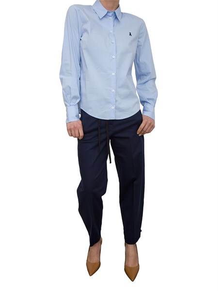 Contraddistinti da un taglio slim con fondo flare, questi pantaloni sono realizzati in tela stretch. Le linee sobrie del capo sono arricchite dalle tasche anteriori alla francese e posteriore a filetto. Il modello dall'allure sartoriale è caratterizzato da una chiusura frontale con gancio a uomo e zip nascosti. Piega stirata fronte e retro.La modella è alta 1.72m e indossa la taglia 42.