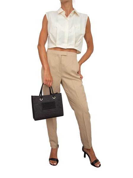 Pantalone Marella in Viscosa e Lino Stretch Slim Fit – Eleganza e comfort si incontrano in questo pantalone Marella, realizzato con viscosa proveniente da cellulosa di legno, ottenuta nel rispetto del patrimonio forestale. Il design slim fit e il mix di viscosa e lino stretch garantiscono una vestibilità perfetta e una libertà di movimento ottimale. La cintura con inserto elastico sul retro e le tasche laterali alla francese, insieme alle tasche posteriori a filetto, aggiungono un tocco di praticità e raffinatezza.