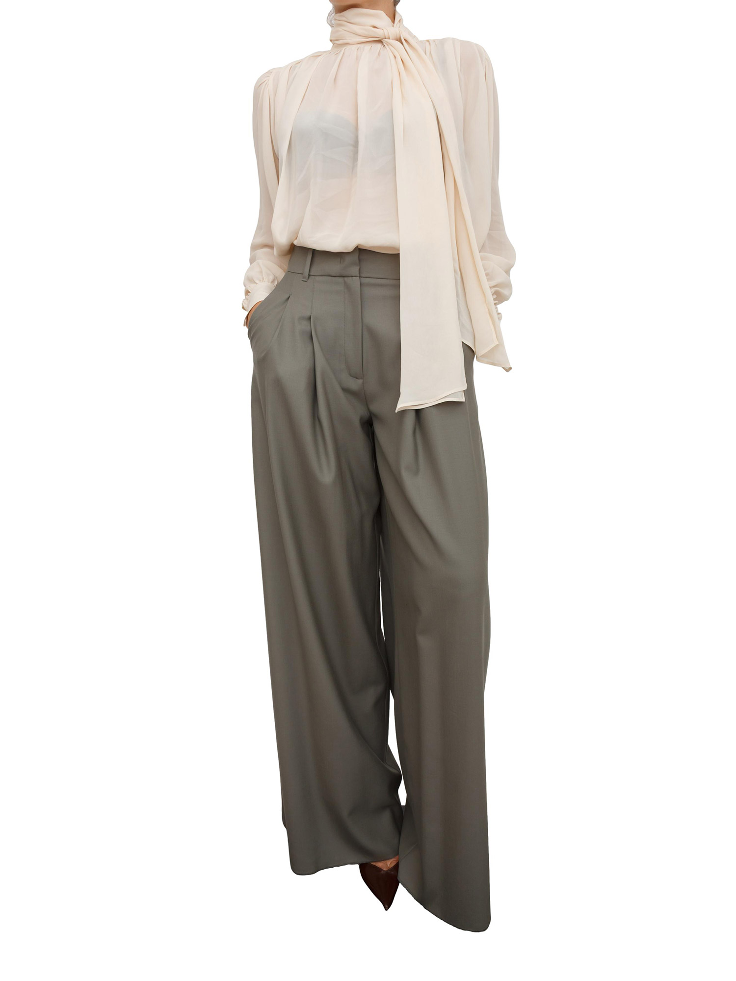 Evoluzione sofisticata del pantalone Marella con design a palazzo per una silhouette semplicemente slanciata. I dettagli giocano la sensualità del fit con ispirazione elegante. La modella è alta 1.72 e indossa la taglia 38.