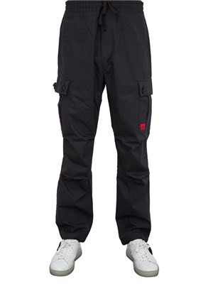 Pantaloni straight fit HUGO Uomo con vita ad altezza regolare, gamba affusolata, tasche cargo con bottoni ed etichetta con logo rossa.