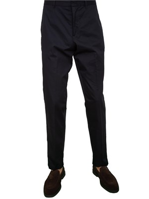 Pantaloni uomo Emporio Armani dal classico taglio chino in tessuto stretch. Un modello estremamente versatile che si adatta a diverse occasioni d'uso per un look sempre impeccabile e senza tempo. I cosidetti capi "essenziali" che non devono mancare nell'armadio maschile. Il modello è alto 1.90m e indossa la taglia 46.