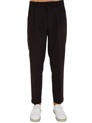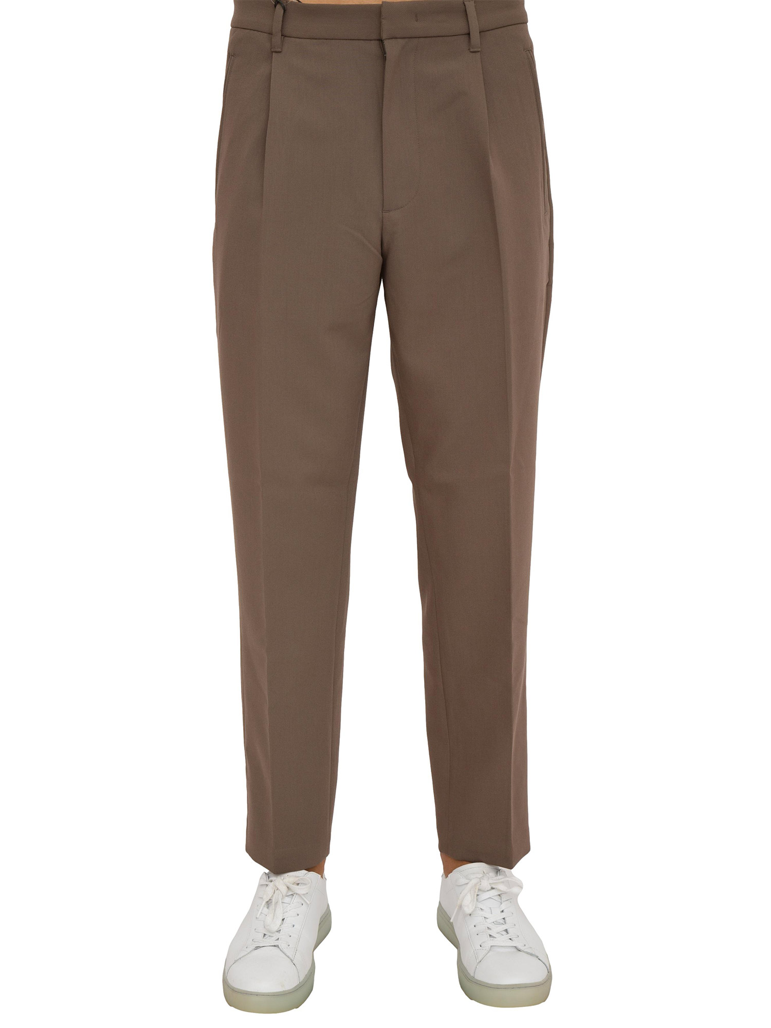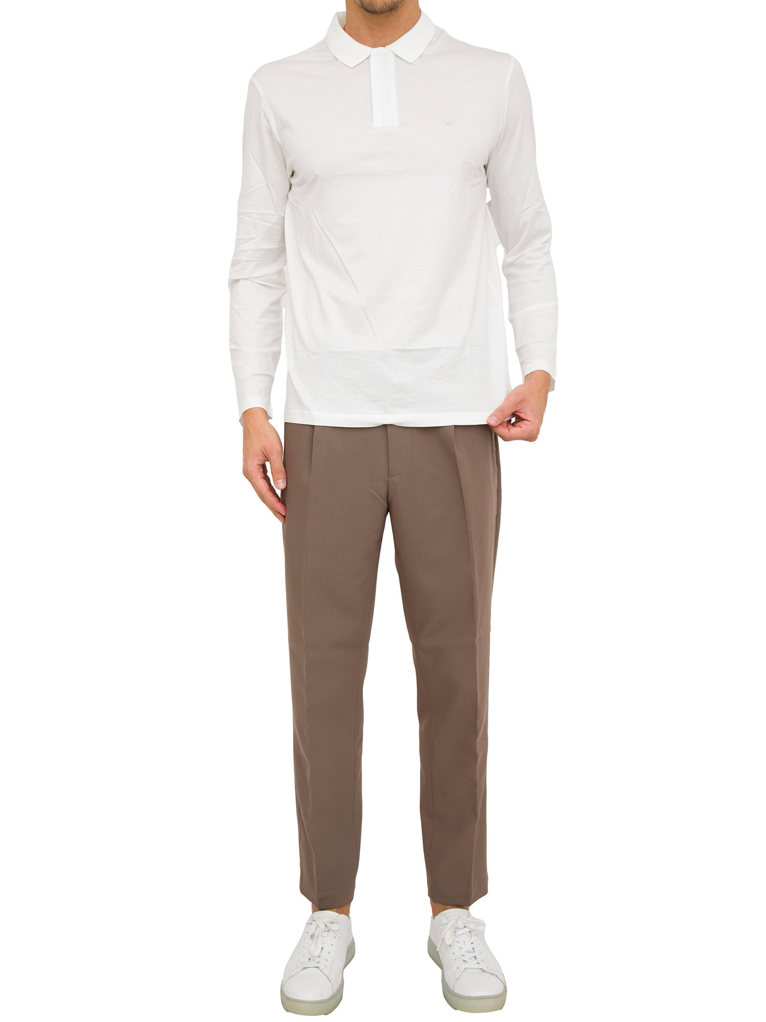 Pantaloni da uomo Emporio Armani con pinces frontali, caratterizzati da tasche laterali a doppio filetto. Chiusura con zip, gancio e bottone.