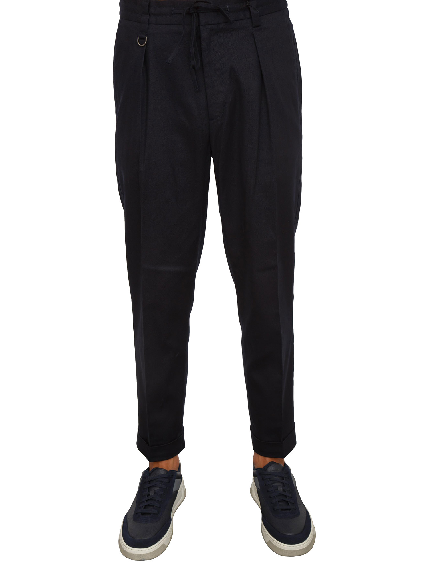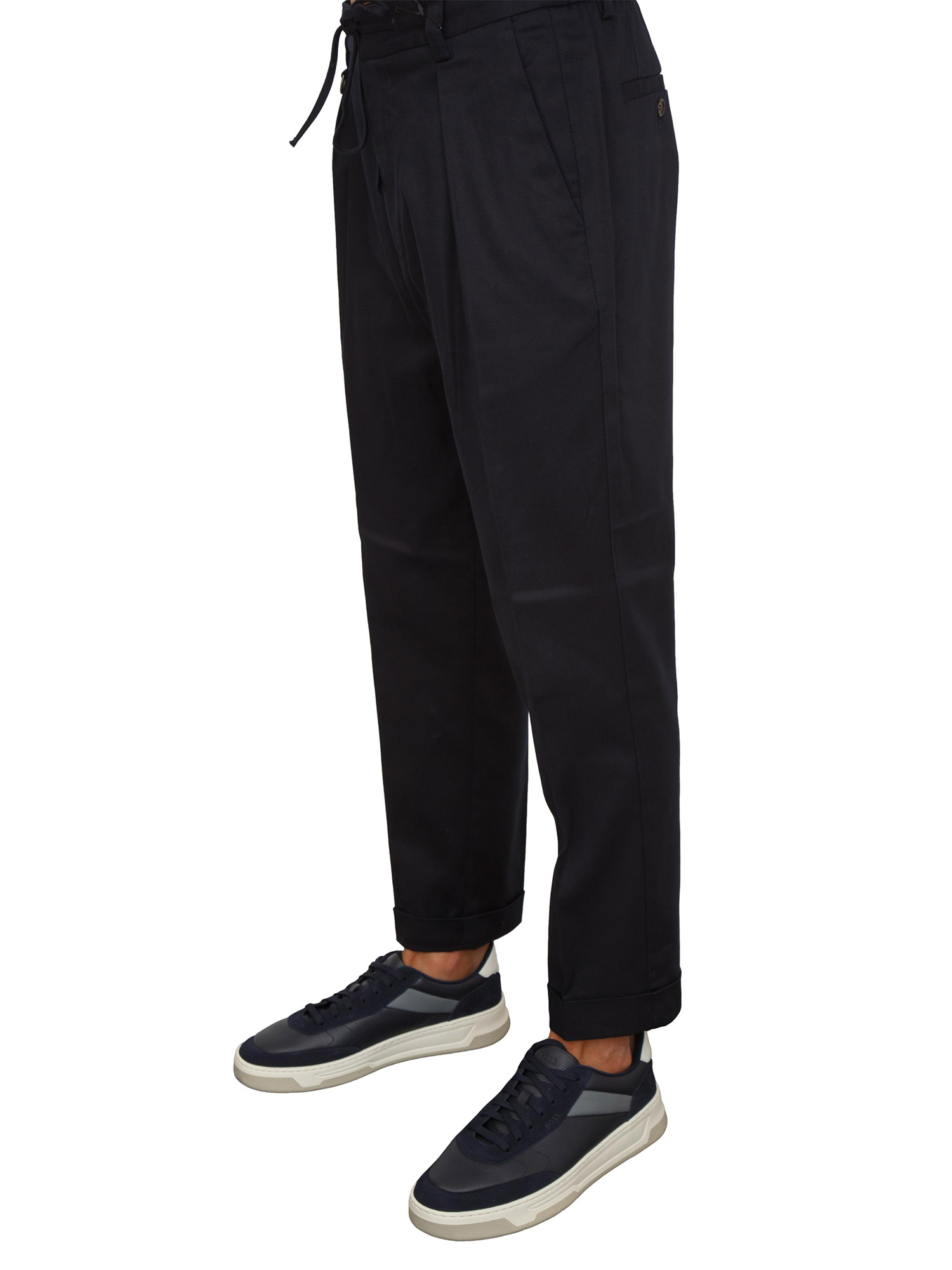 Pantalone chino Paolo Pecora in gabardina blu con coulisse
