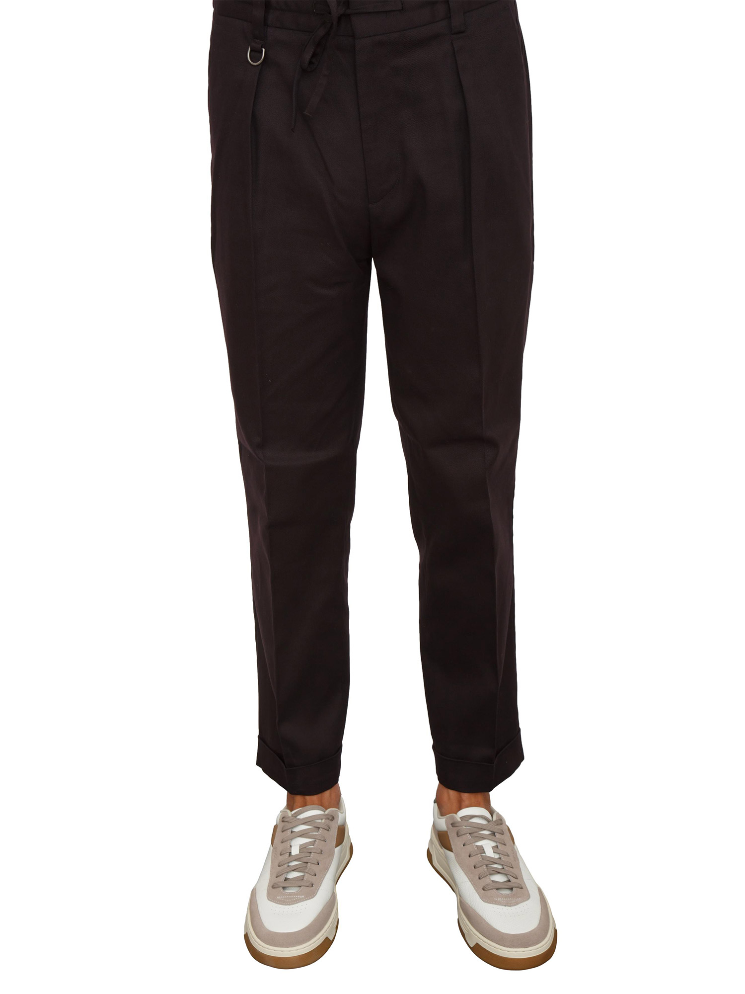 Pantalone chino Paolo Pecora in gabardina marrone con coulisse