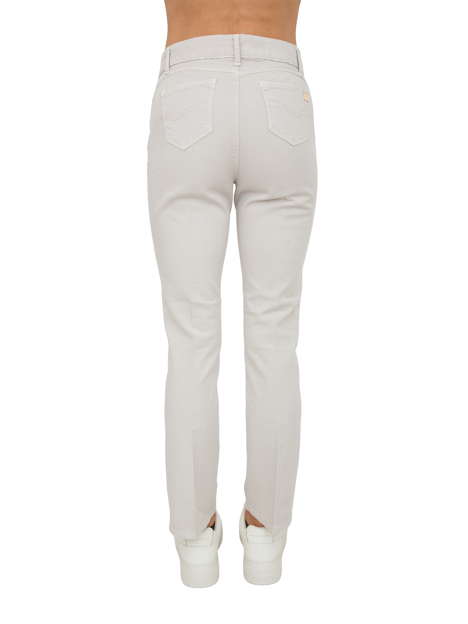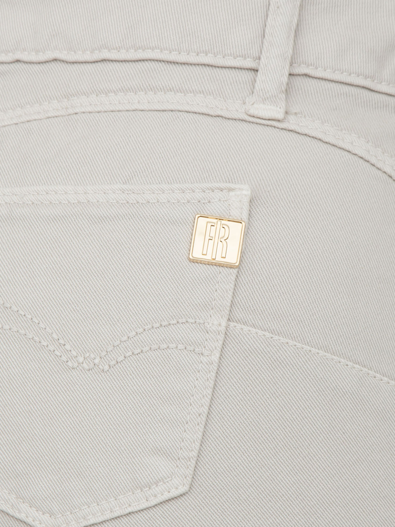 Pantalone cropped Fracomina realizzato in gabardina di cotone elasticizzato super comodo con effetto push up. Modello 5 tasche con vita regolare, piega stirata avanti e dietro e fondo leggermente flare. La modella è alta 1.72 e indossa la taglia 25.