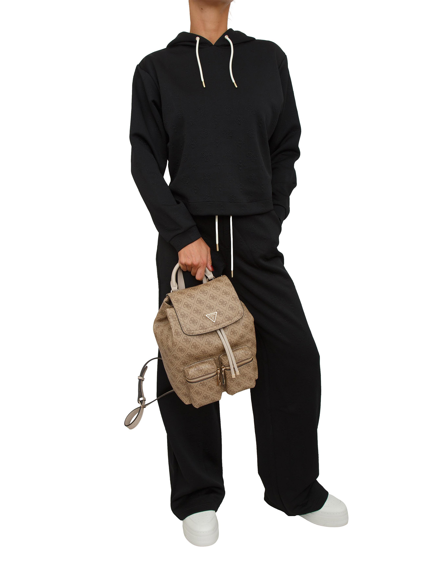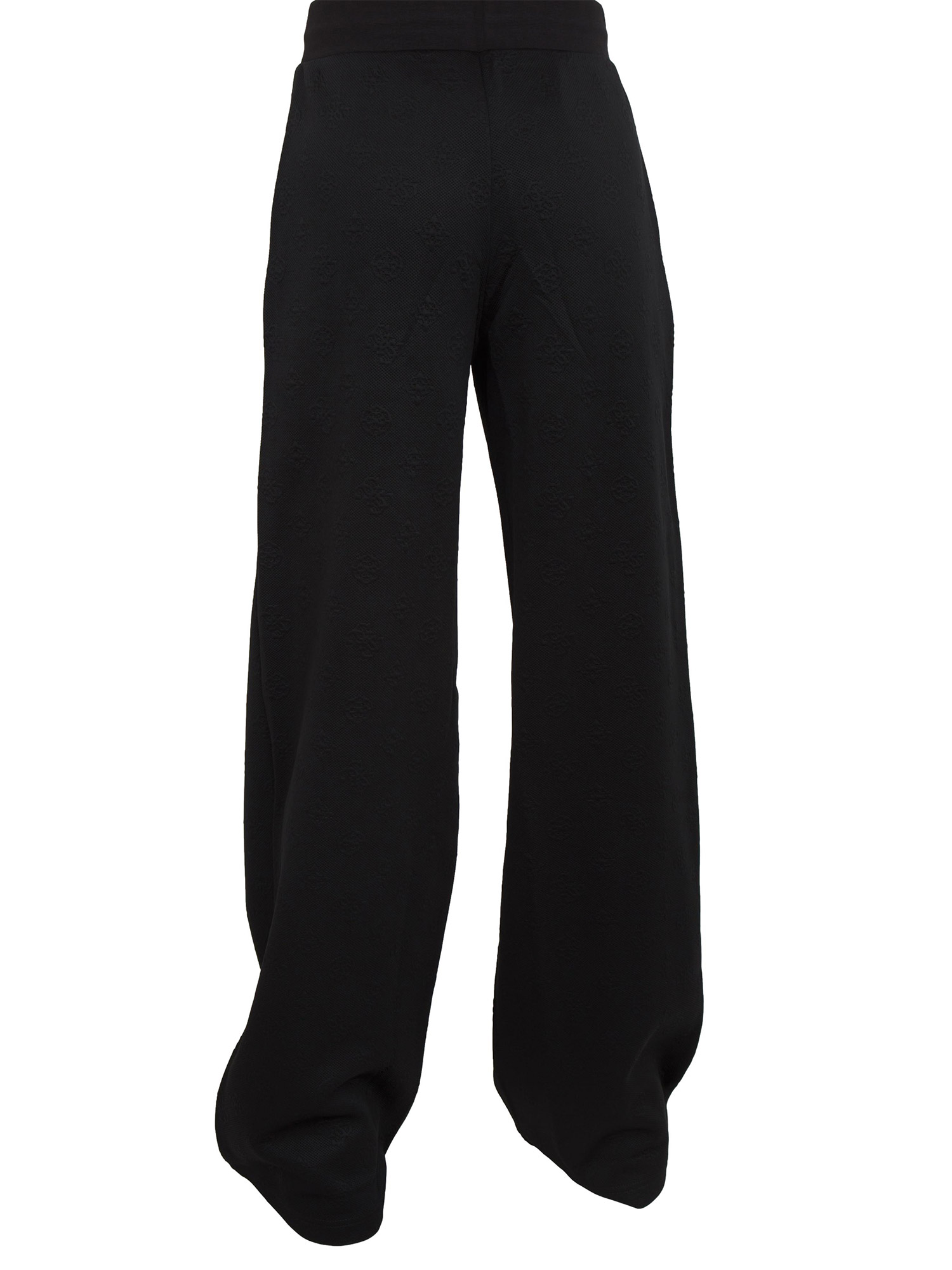 Scopri il comfort quotidiano con questo pantalone sportivo di lusso Guess Jeans donna realizzato in misto cotone stretch. Vestibilità comoda e gamba ampia con logo jacquard 4G e peony. Perfetto per un brunch in città con amici. La modella è alta 1.72 e indossa la taglia S.