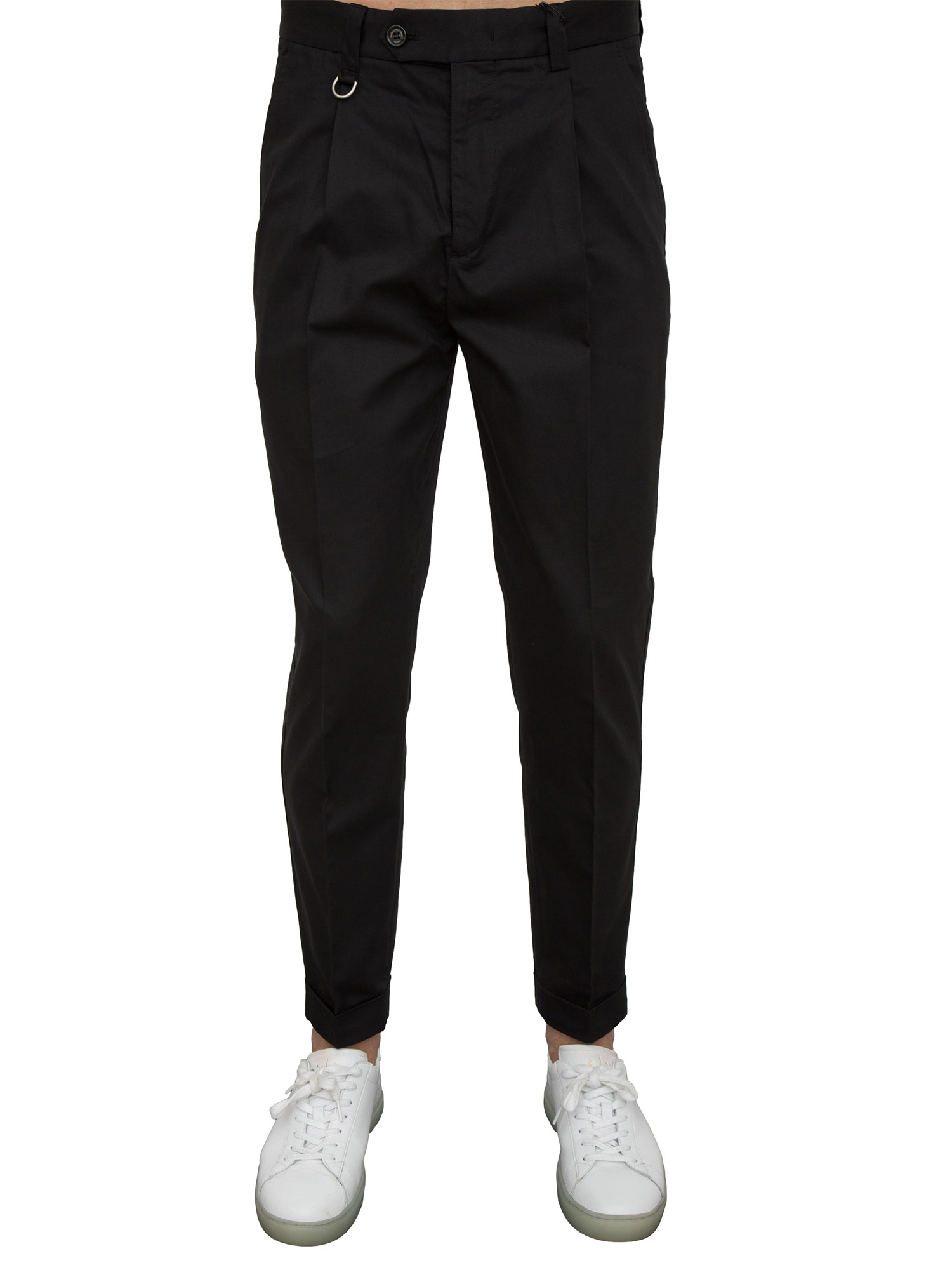 Pantalone chino nero Paolo Pecora con pinces in gabardina