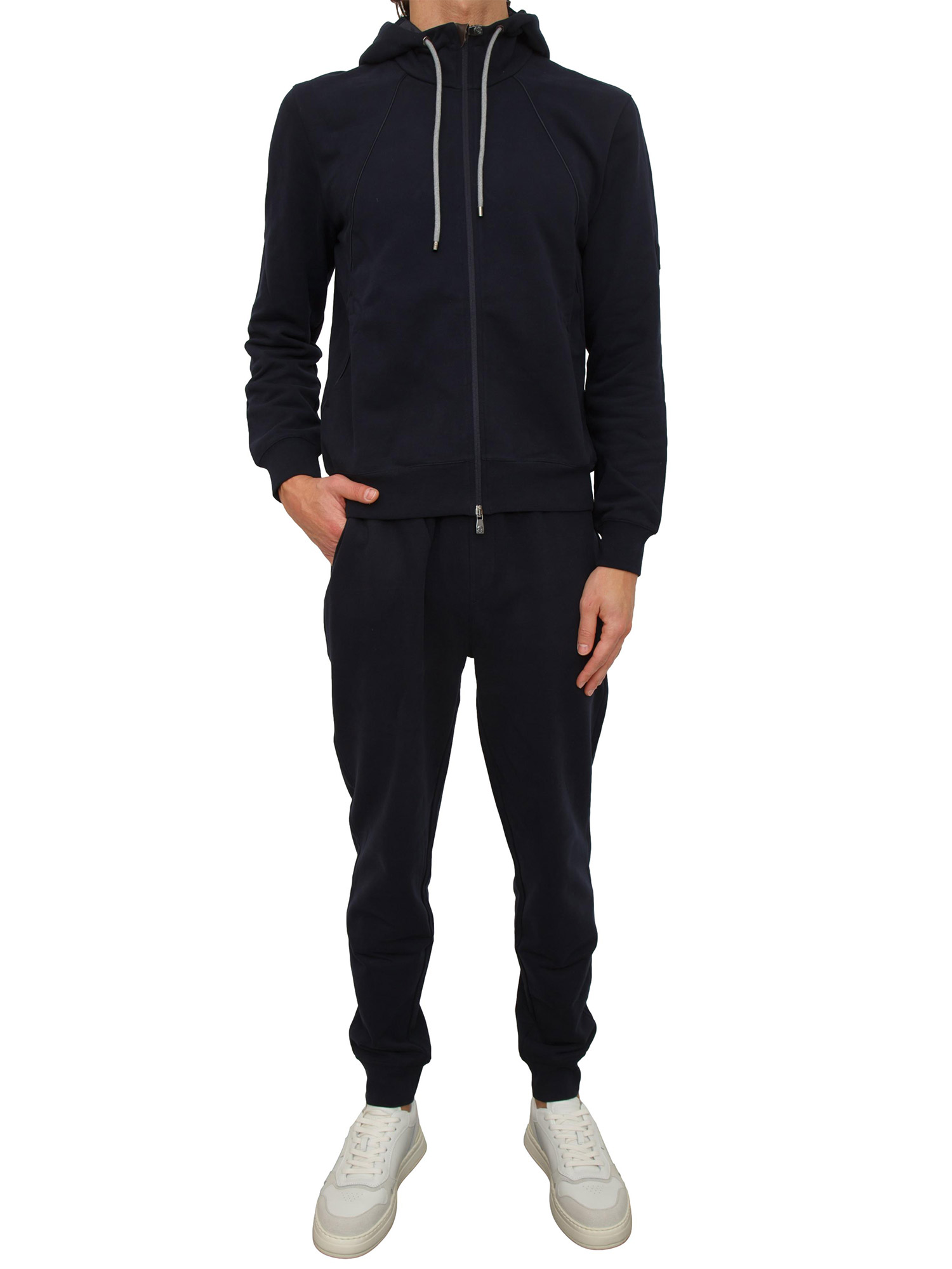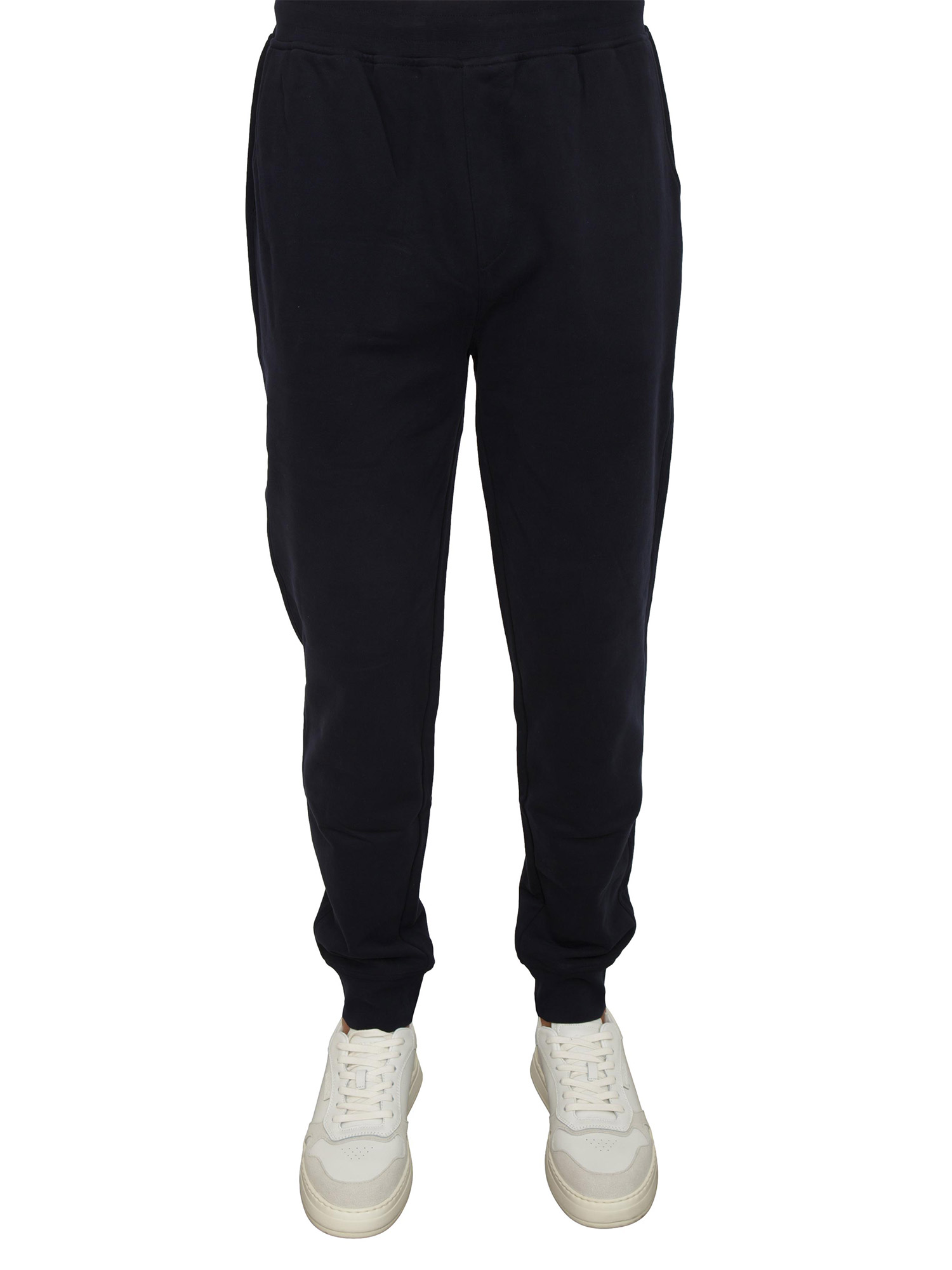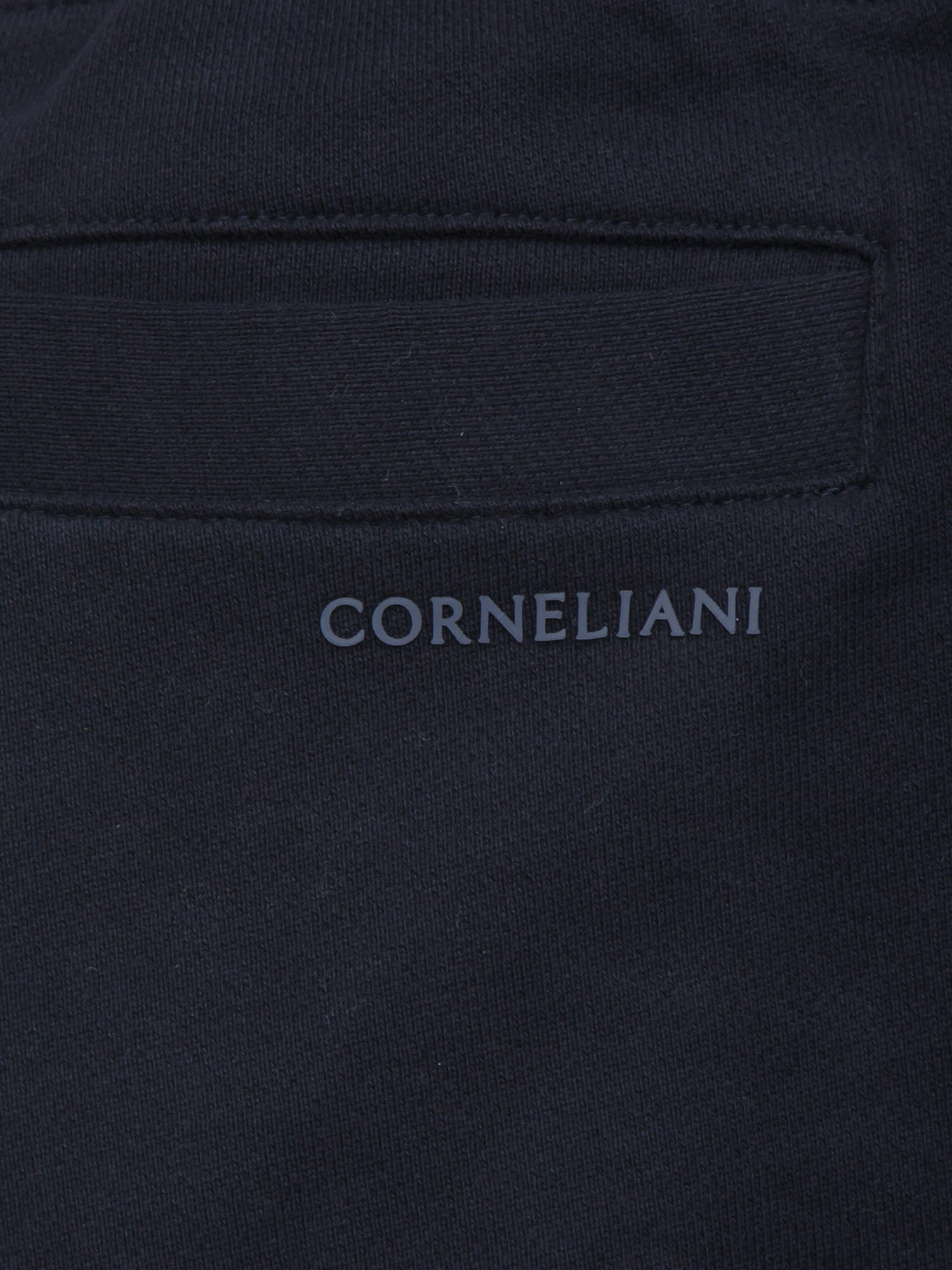 Pantalone tuta Corneliani realizzato in misto cotone con elastico in vita e sul fondo gamba. Design con vestibilità regular, due tasche laterali ed una a filetto dietro. Il modello è alto 1.90m e indossa la taglia 50.