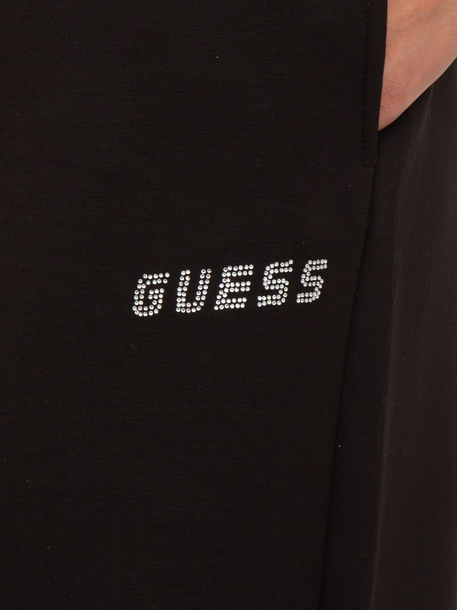 Pantalone jogger nero Guess Jeans donna con logo strass