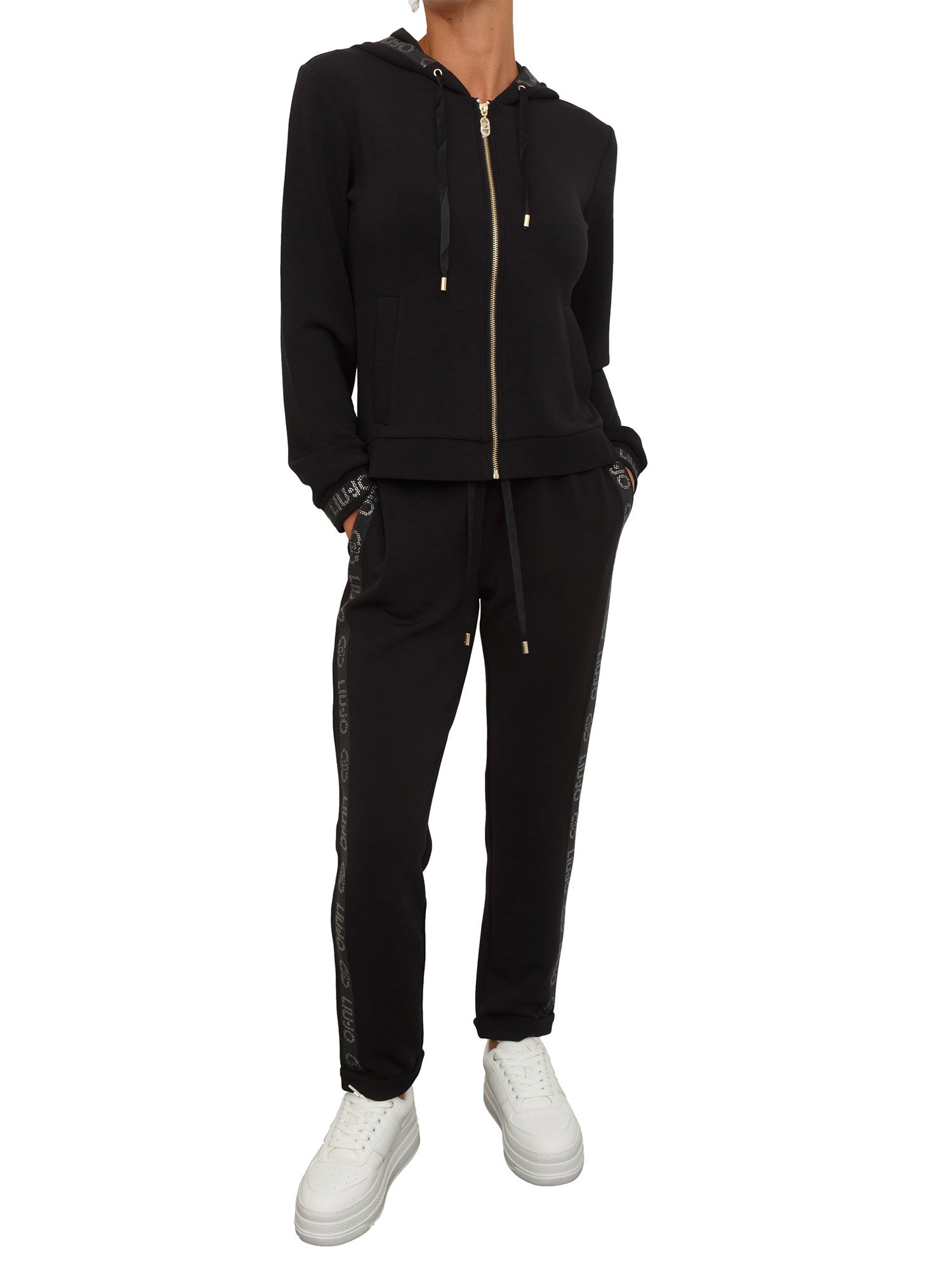 Pantalone tuta Liu Jo donna in cotone nero con banda strass logo