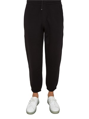 Modello d'ispirazione sporty, questi pantaloni jogger sono realizzati in misto cotone stretch bonded. Le linee essenziali sono rese contemporanee dalla banda laterale a contrasto e dalla presenza della patch logata. Vita elasticizzata e tasche laterali.