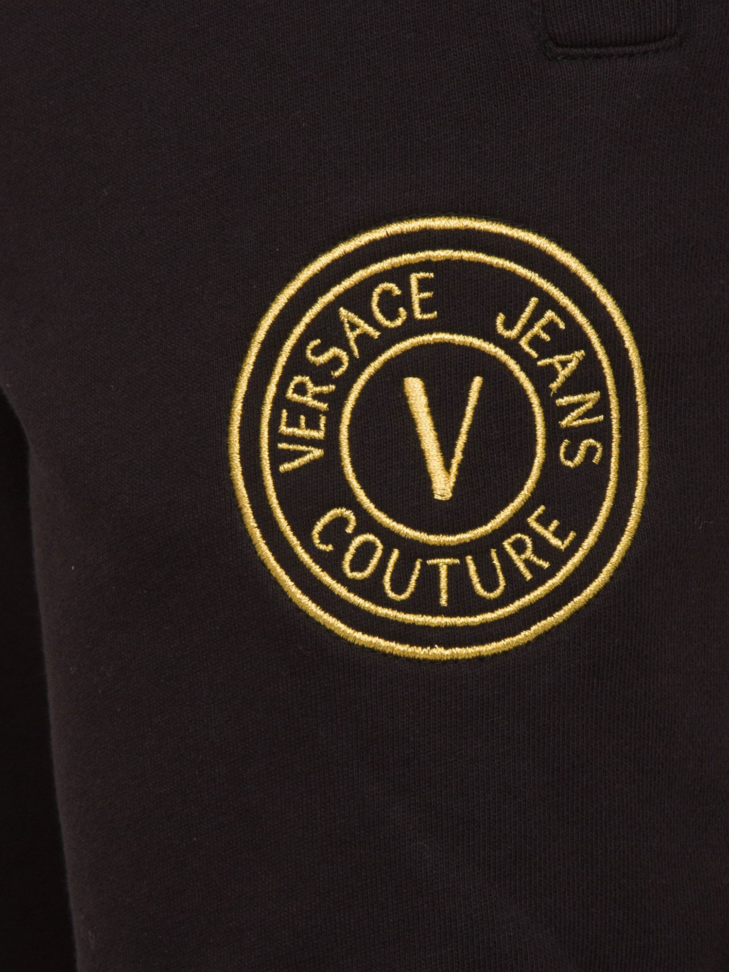 Pantaloni Versace Jeans Couture realizzati in felpa elasticizzata, progettati per garantire comfort e libertà di movimento. Design dalla vestibilità morbida con vita regolabile grazie ai cordini che offrono una calzata adatta alla tua silhouette. Polsini elastici alle gambe, due tasche laterali e logo del marchio sulla parte anteriore conferiscono un look sofisticato e distintivo