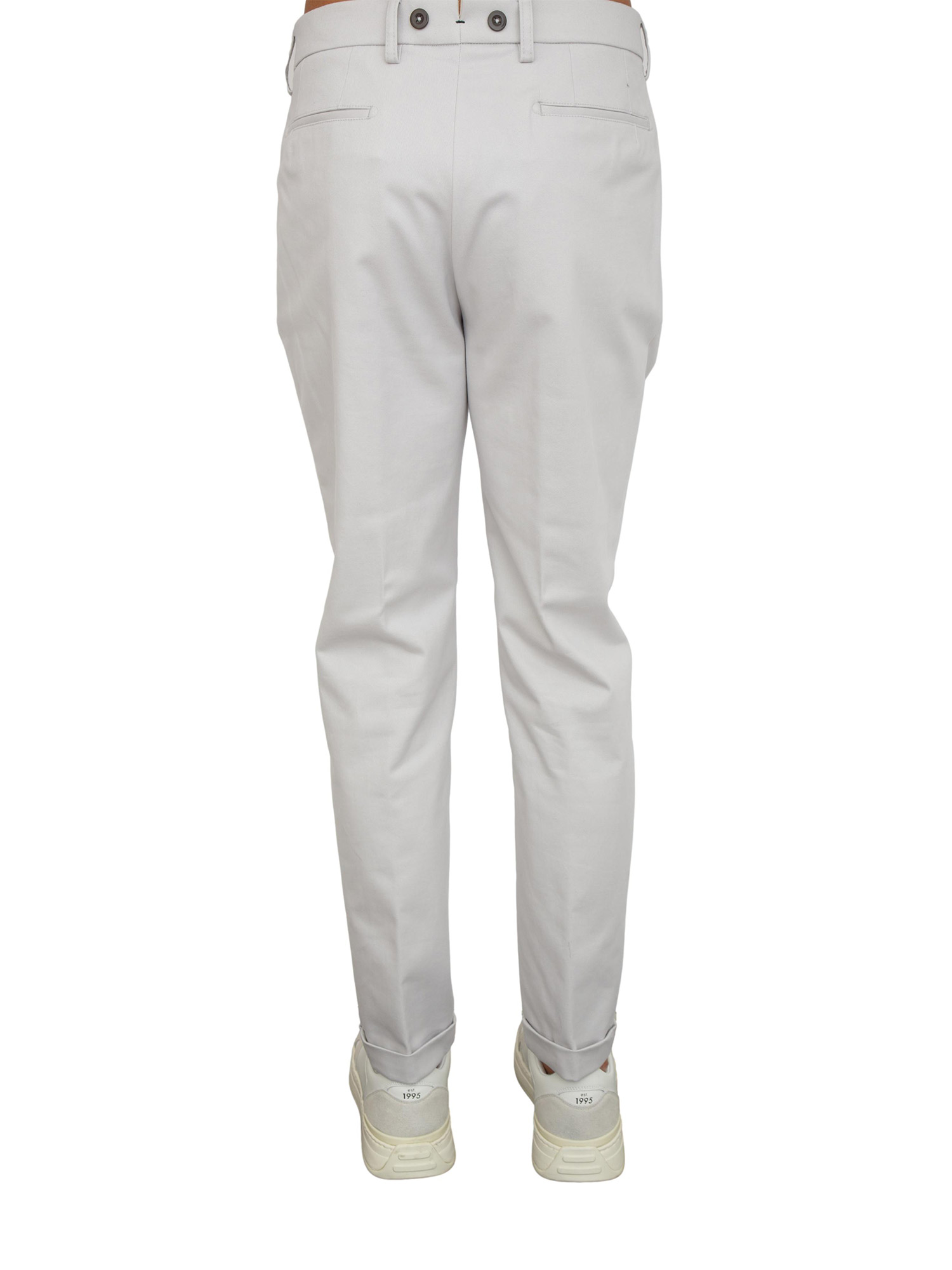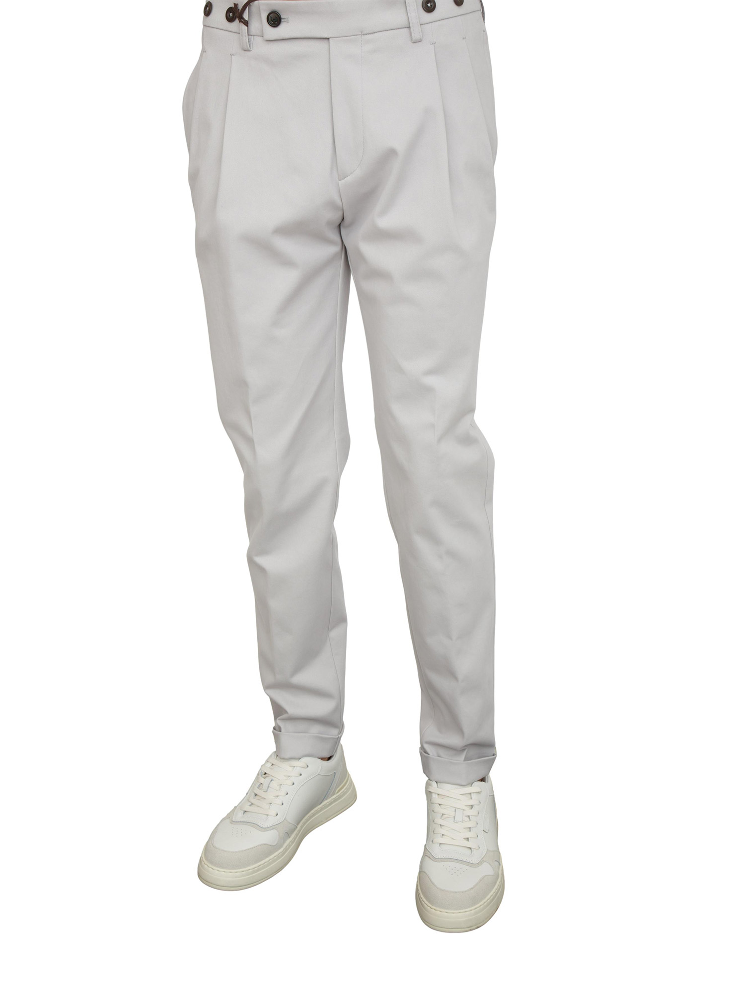 Pantaloni uomo Berwich modello Barber realizzati in pregiatissimo cotone stretch in tinta unita dalla mano calda. Vestibilità slim dotata di pince, tasche chino, passanti in vita e risvolto sul fondo. Semplicemente stupendo sotto ogni outfit. Il modello è alto 1.90m e indossa la taglia 48.