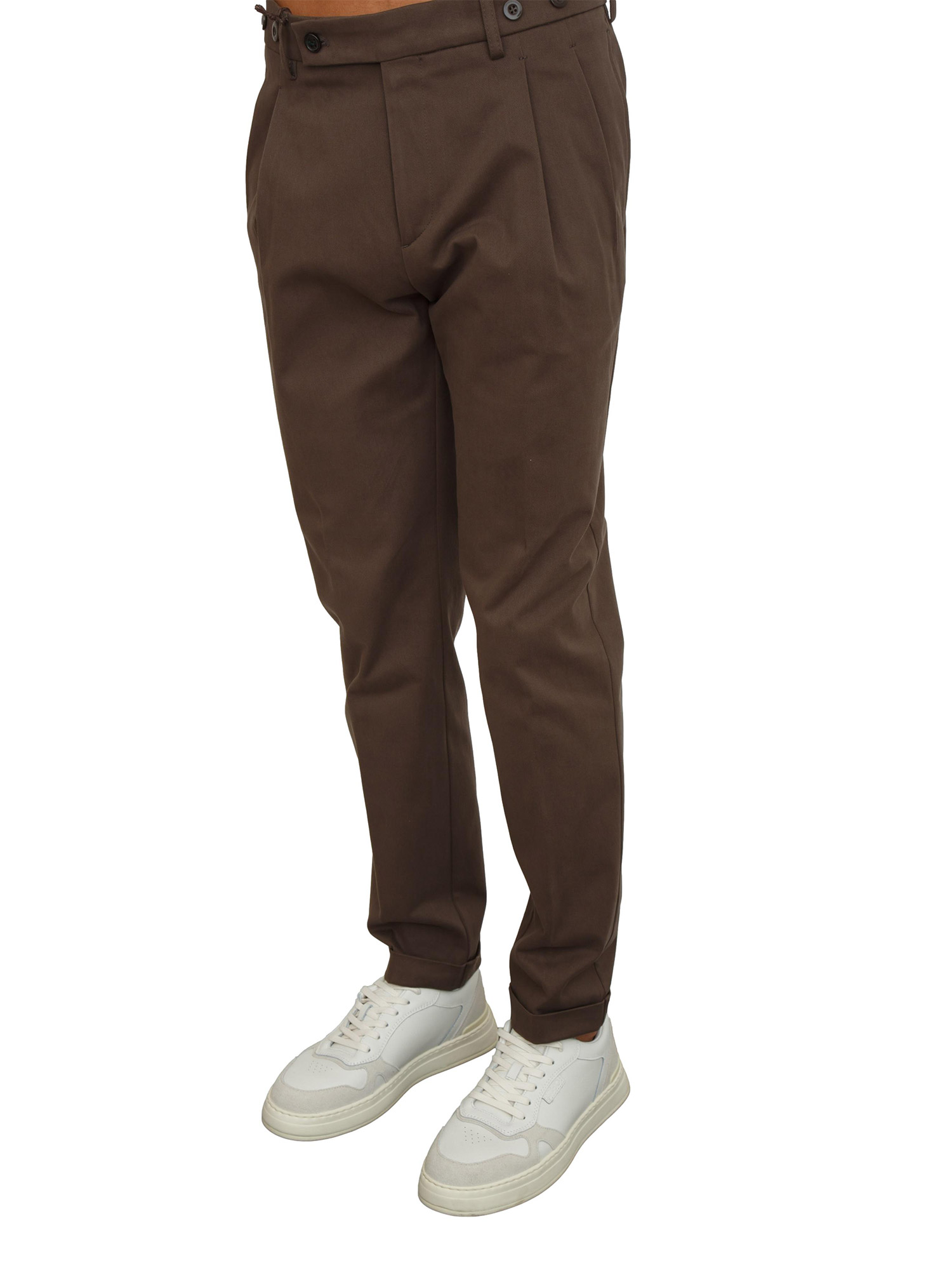 Pantaloni uomo Berwich modello Barber realizzati in pregiatissimo cotone stretch in tinta unita dalla mano calda. Vestibilità slim dotata di pince, tasche chino, passanti in vita e risvolto sul fondo. Semplicemente stupendo sotto ogni outfit. Il modello è alto 1.90m e indossa la taglia 48.