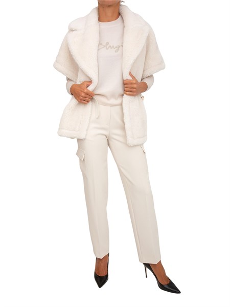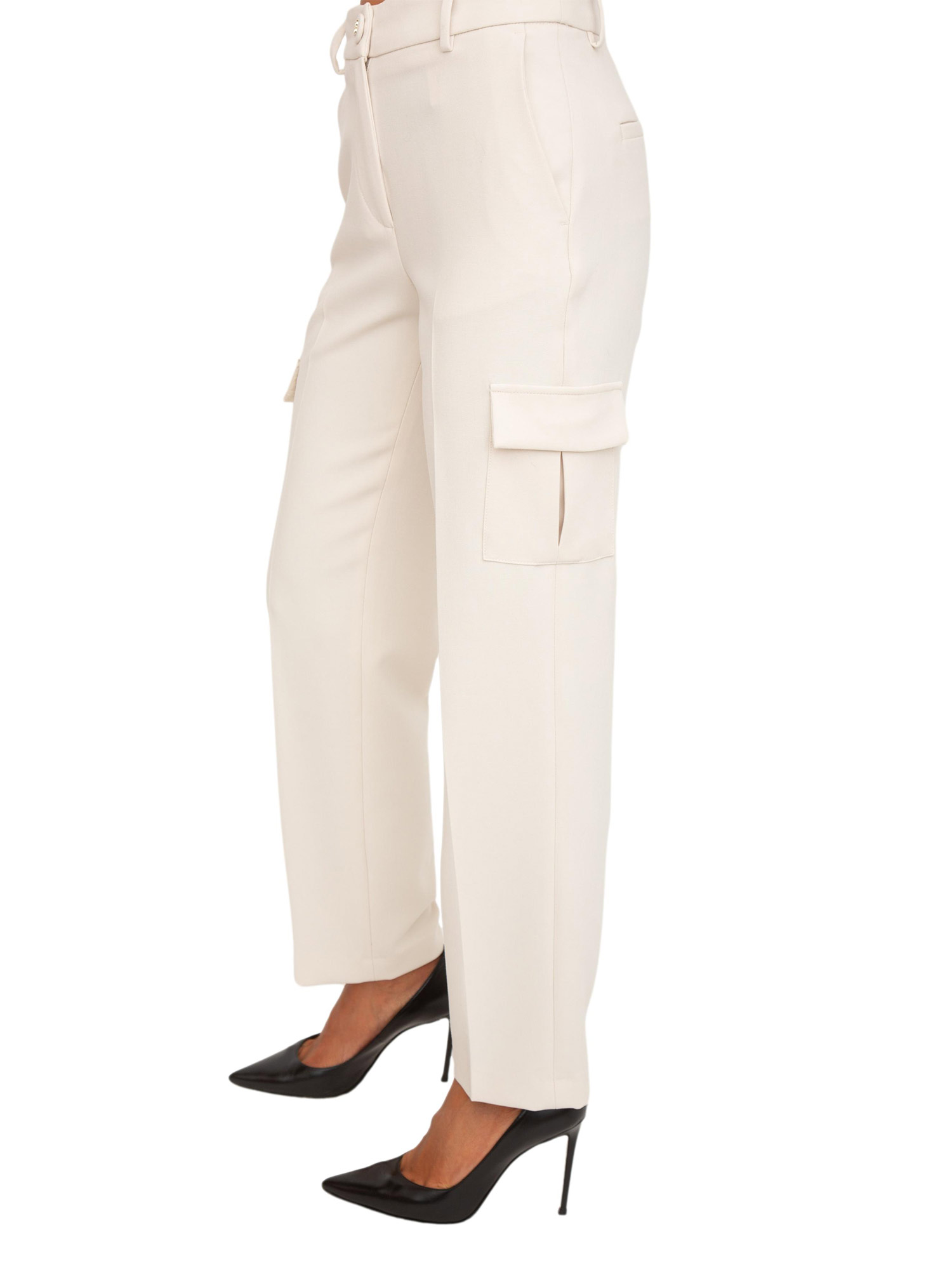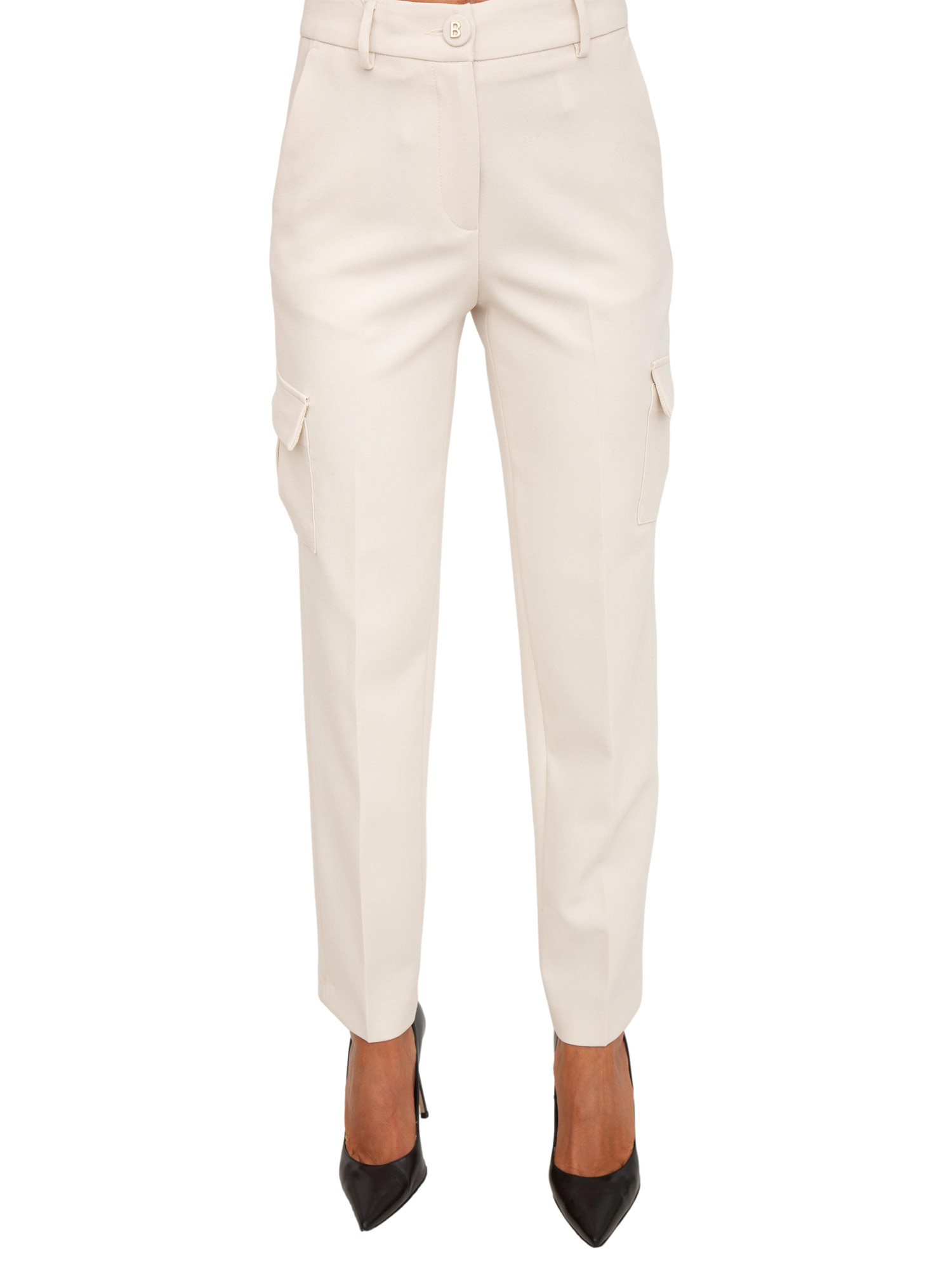 Sartoriali, versatili e inediti. pantaloni Blugirl in cady mano calda, linea a sigaretta, con tasche cargo ai fianchi. Dotati di chiusura zip e bottone ricoperto con logo, tasche alla francese laterali e a filetto sul retro. La modella è alta 1.72 e indossa la taglia 38.