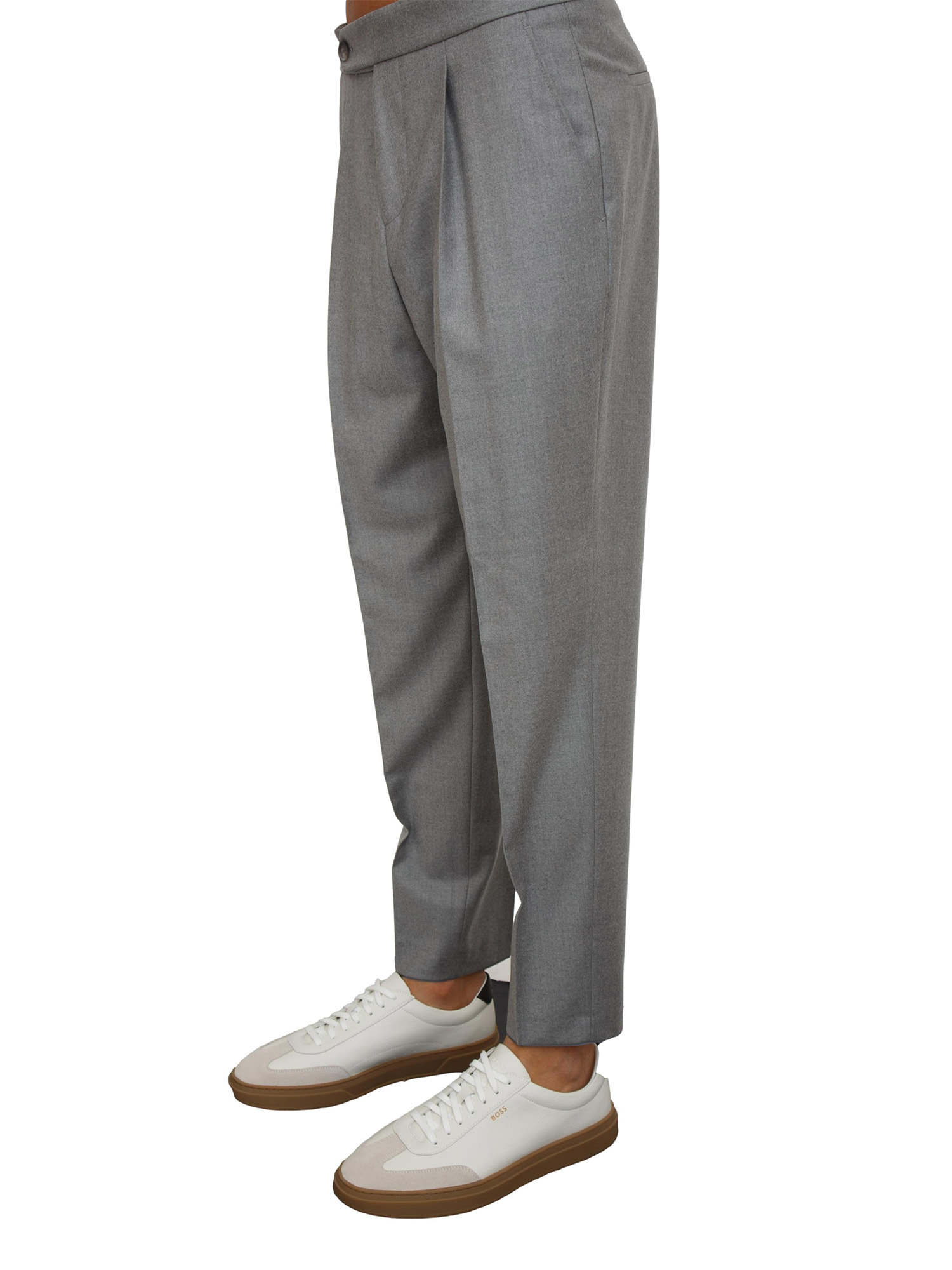 Dotati di regolatori laterali per il massimo comfort, questi pantaloni BOSS Uomo sono perfetti per ogni occasione. Lana vergine mélange. Slim fit affusolato con pence, piega stirata e tasche laterali. Il modello è alto 1.90m e indossa la taglia 46.