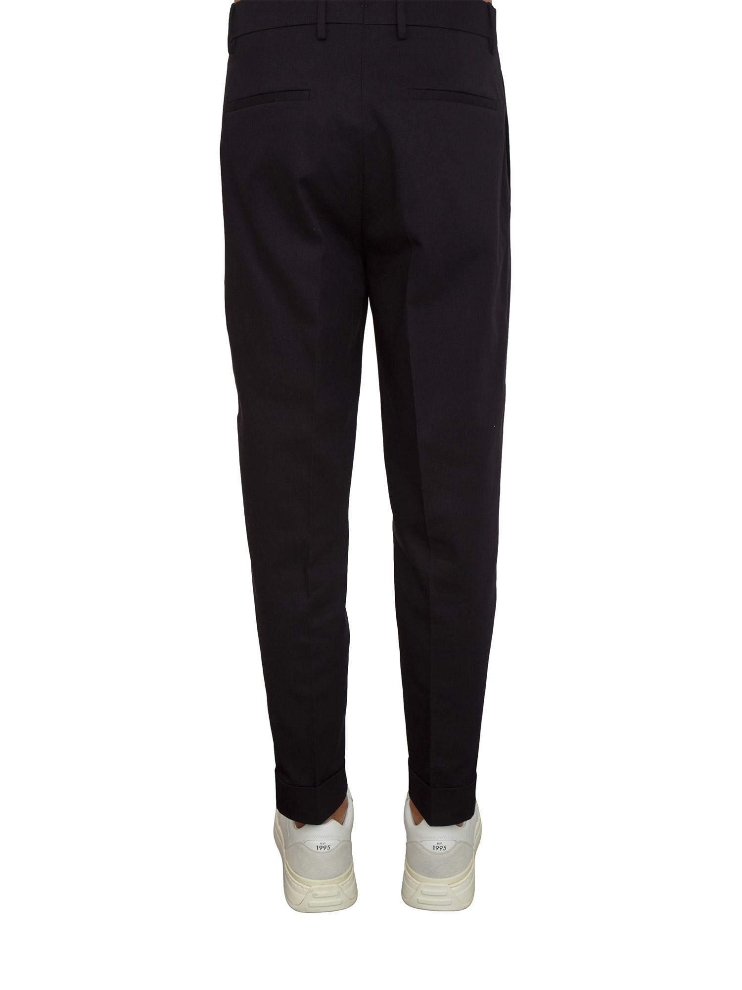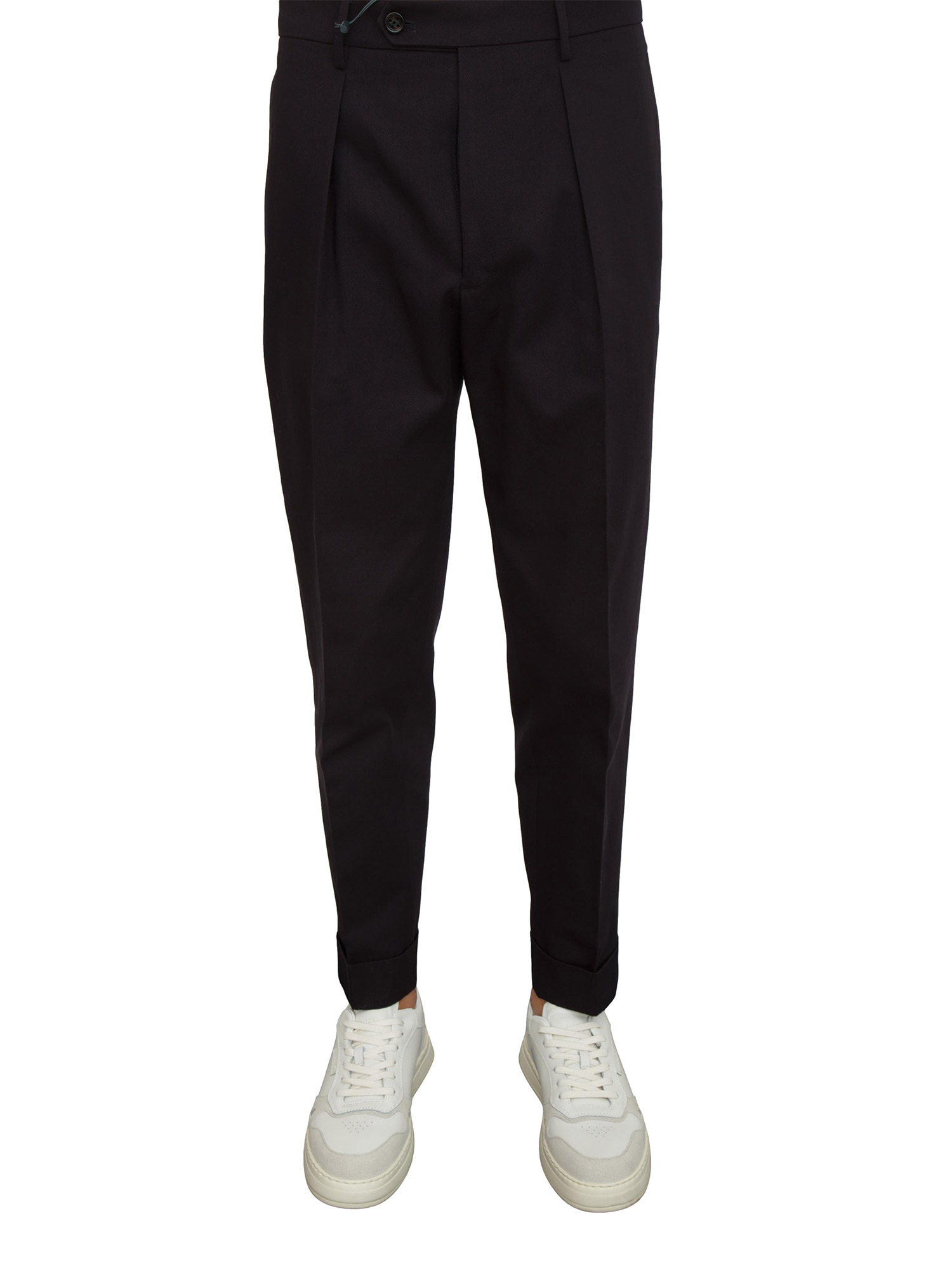 Pantaloni uomo Berwich modello Chiaia realizzati in pregiatissimo twill di cotone con vestibilità slim. Design dotato di pince, tasche chino, chiusura con zip nascosta e bottone e risvolto sul fondo. Semplicemente stupendo. Il modello è alto 1.90m e indossa la taglia 46.