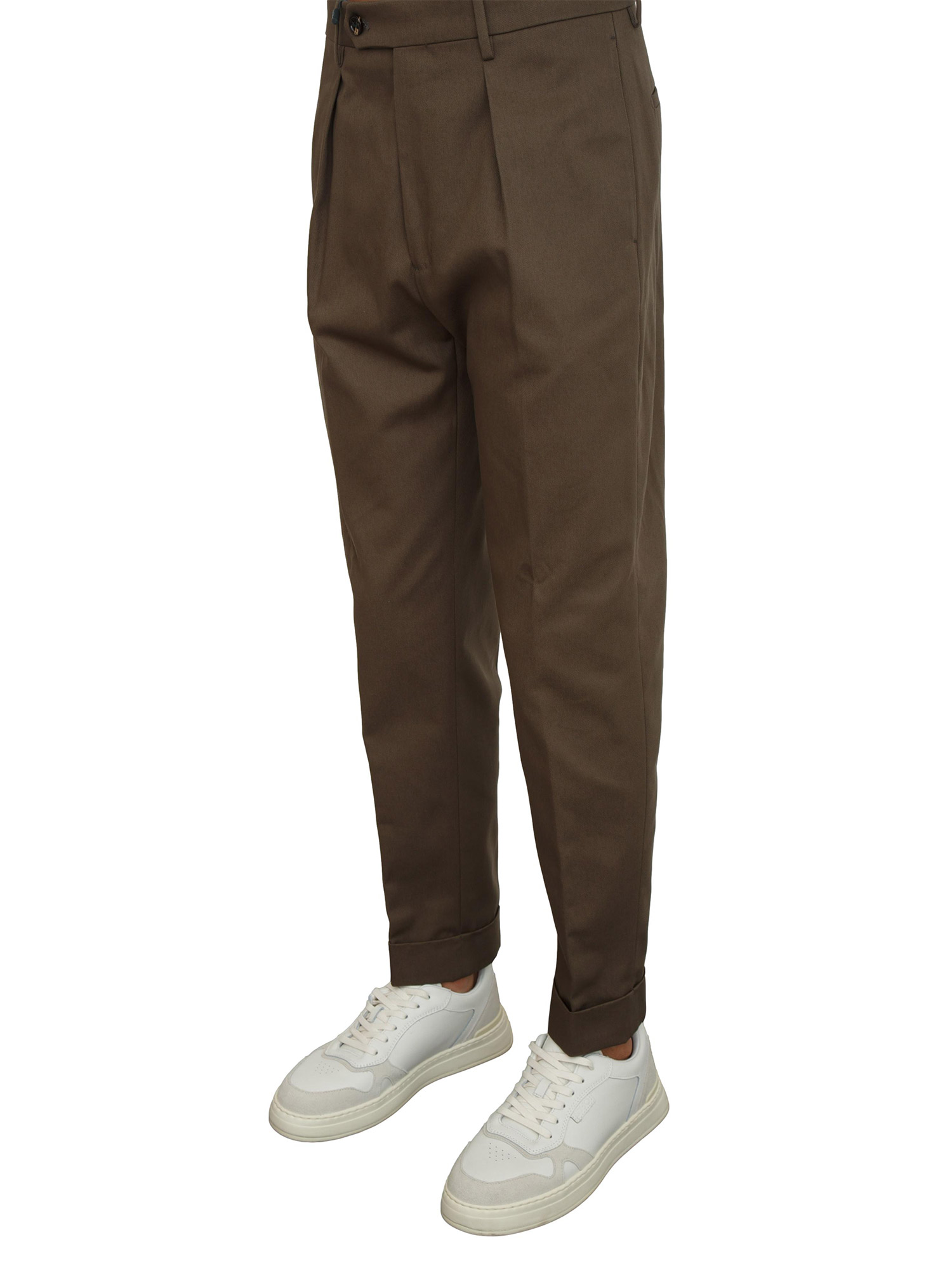 Pantaloni uomo Berwich modello Chiaia realizzati in pregiatissimo twill di cotone con vestibilità slim. Design dotato di pince, tasche chino, chiusura con zip nascosta e bottone e risvolto sul fondo. Semplicemente stupendo. Il modello è alto 1.90m e indossa la taglia 46.