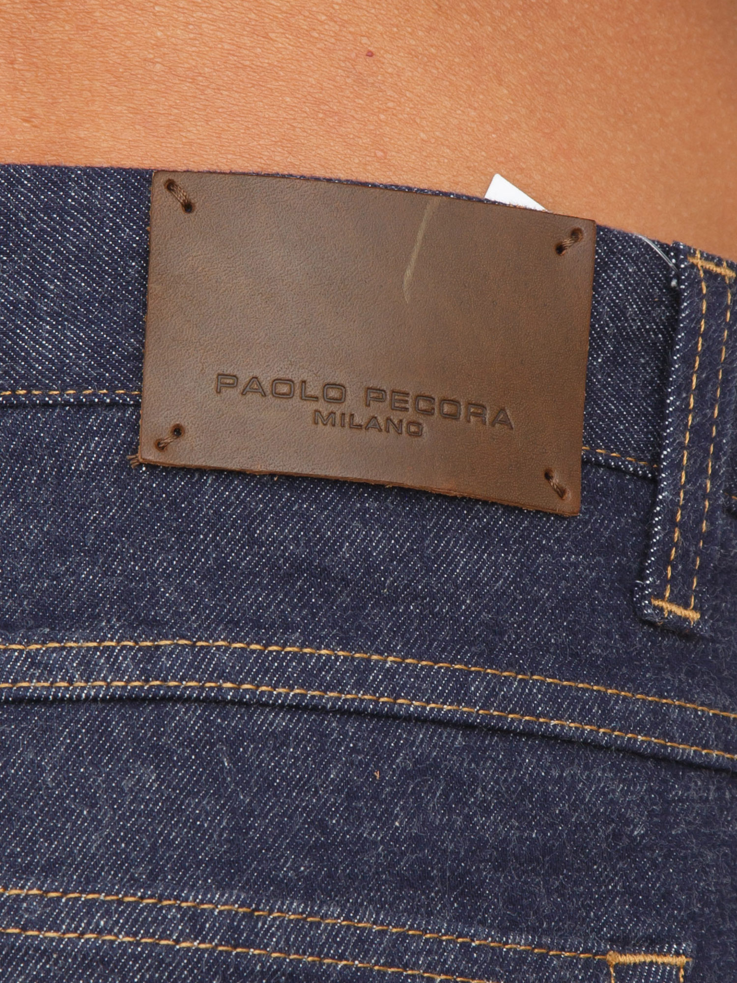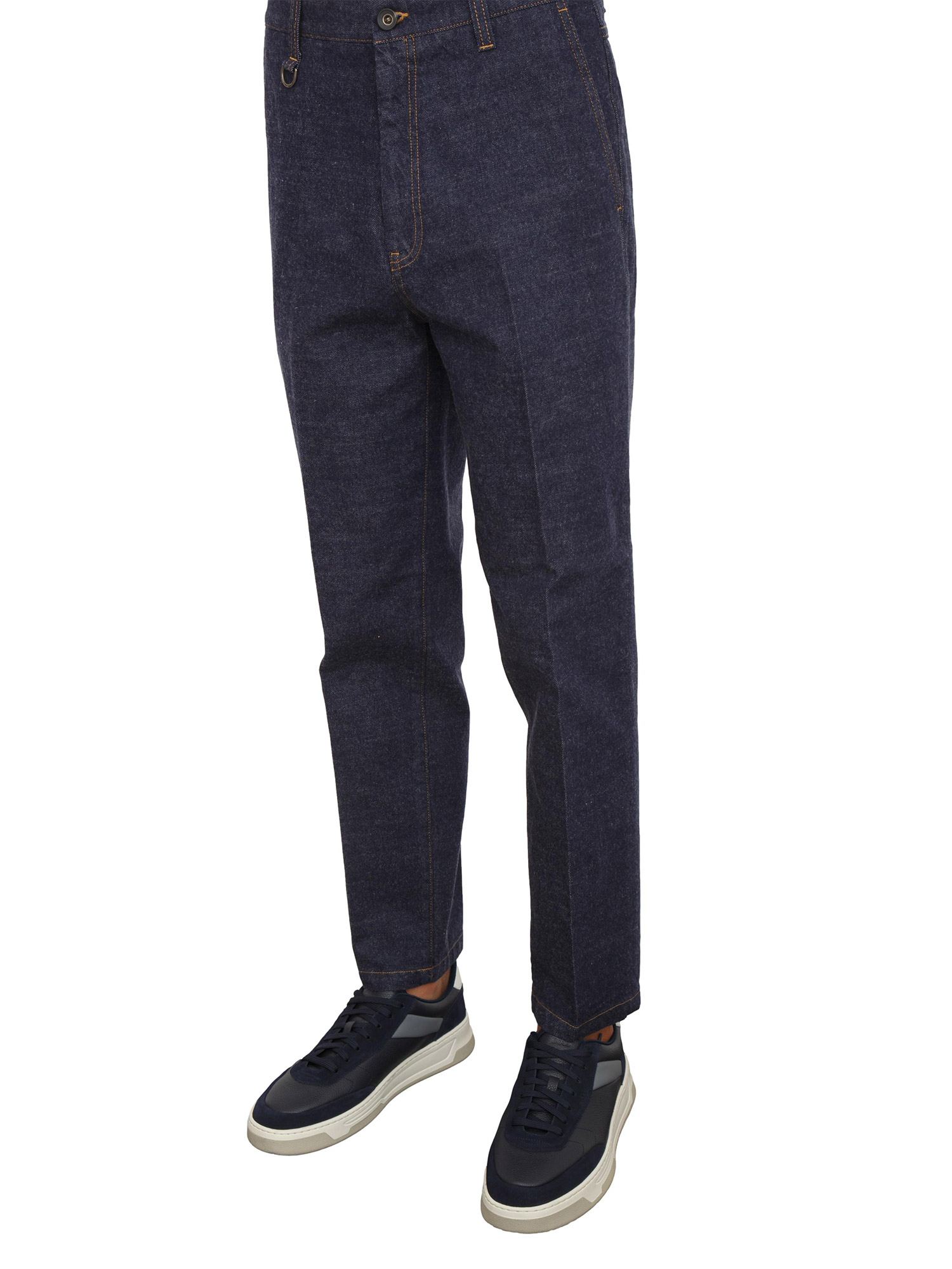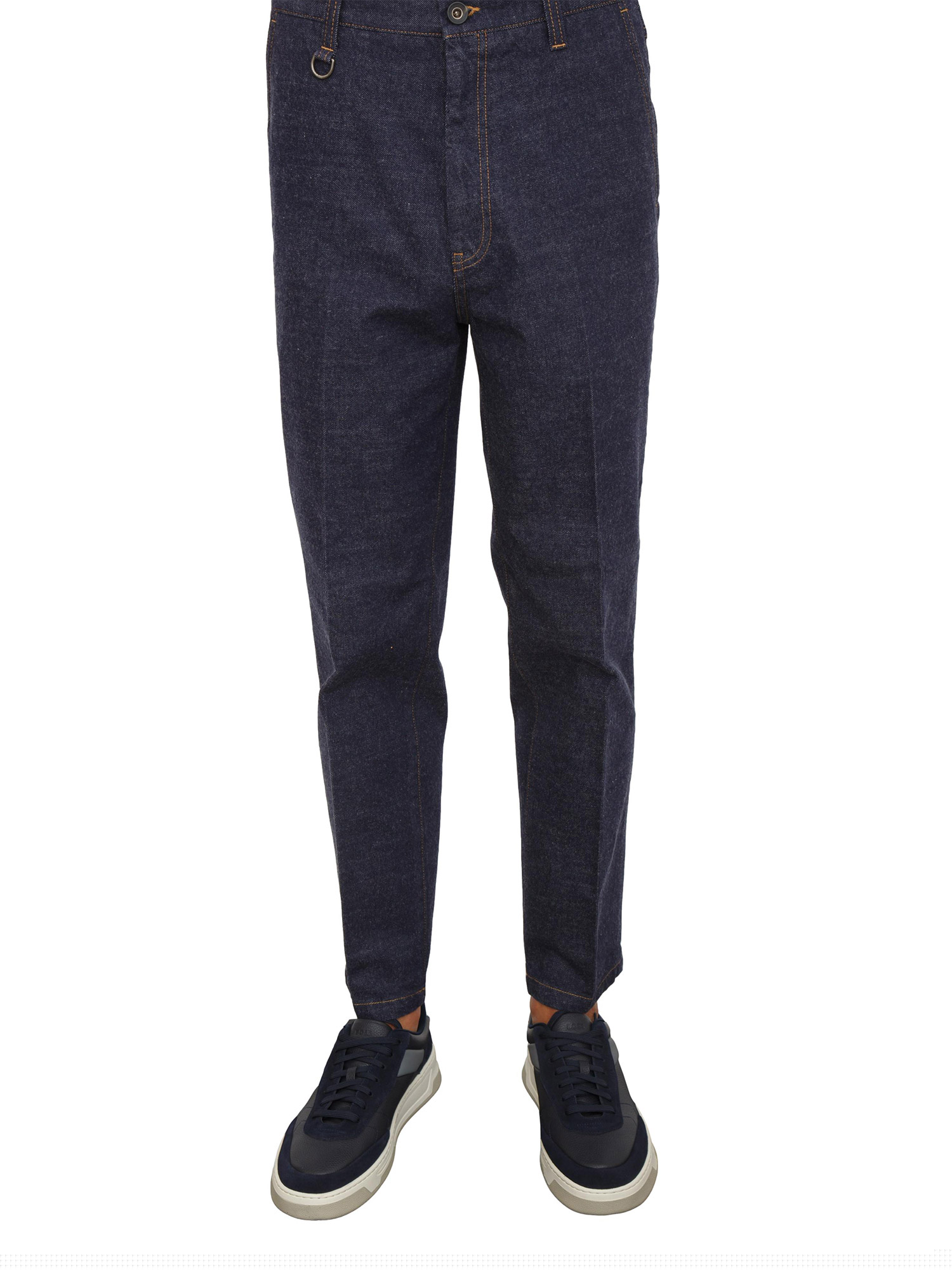 Pantalone chino Paolo Pecora dal taglio relaxed, realizzato in denim di cotone stretch. Il design unisce la linea sartoriale con piega centrale stirata allo stile contemporaneo metropolitano. Perfetto per look casual raffinati o outfit urban-chic. Il modello è alto 1.90m e indossa la taglia 32.