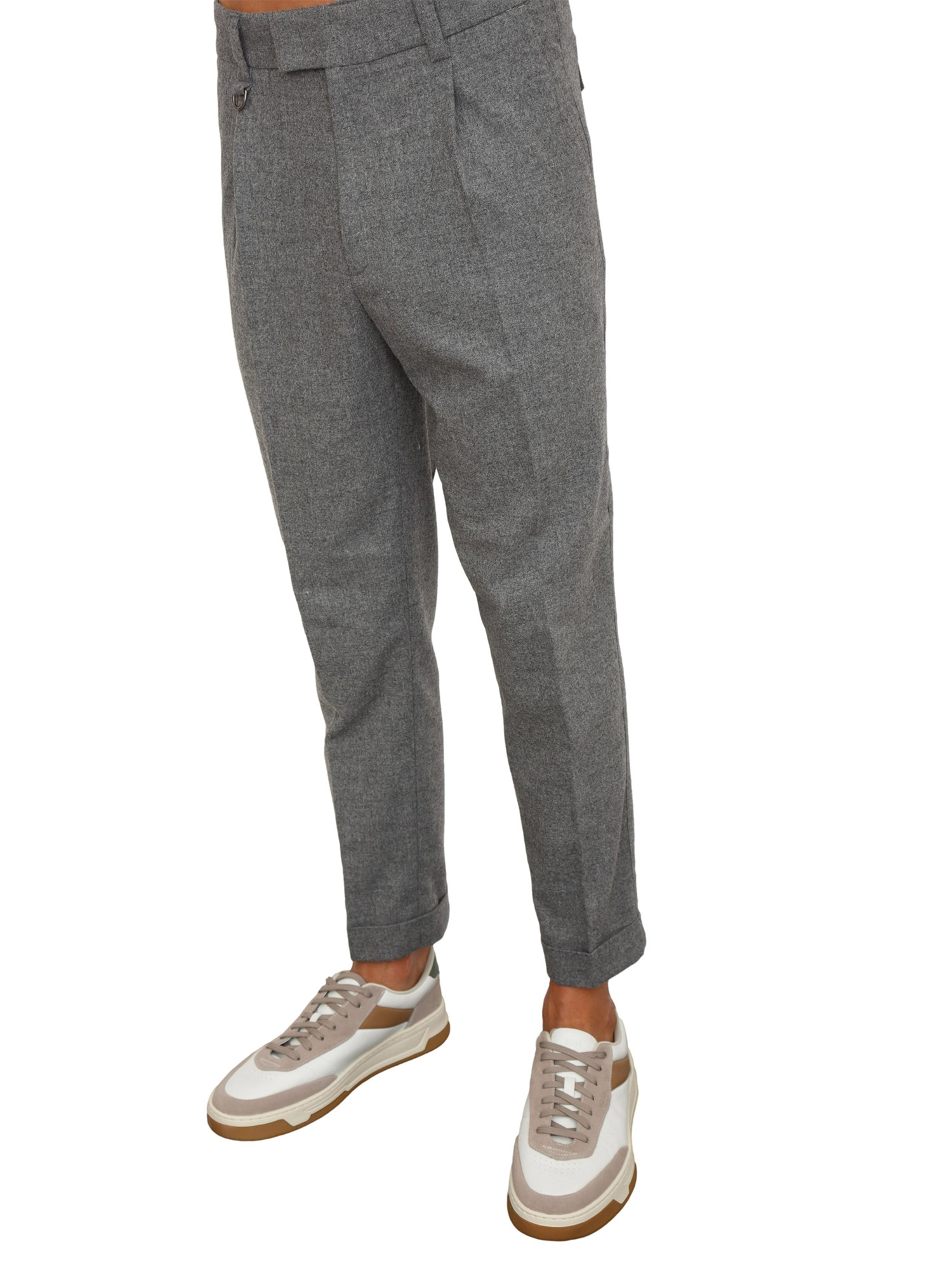 Pantaloni chino Paolo Pecora modello sartoriale in fresco lana grigio melange