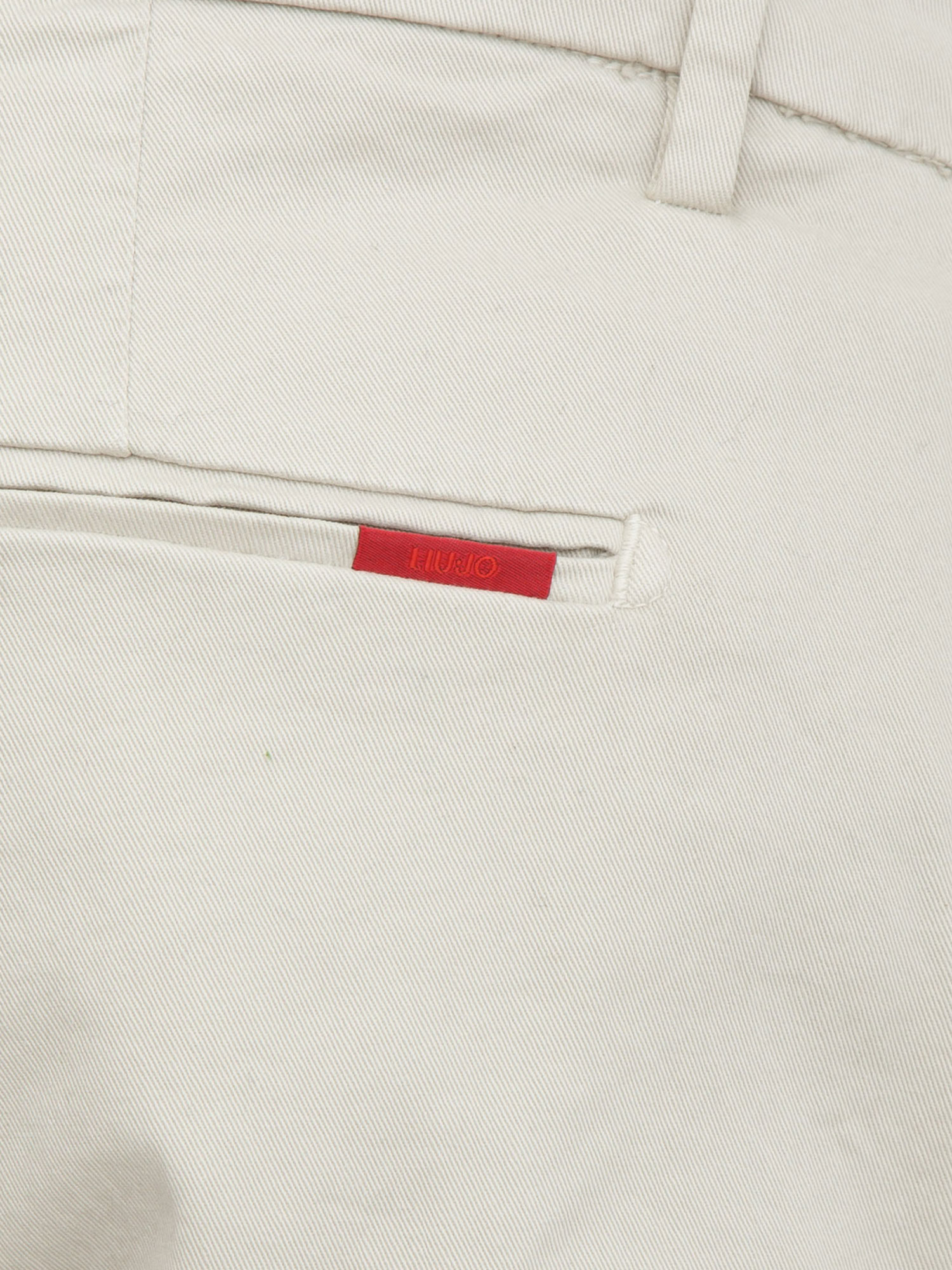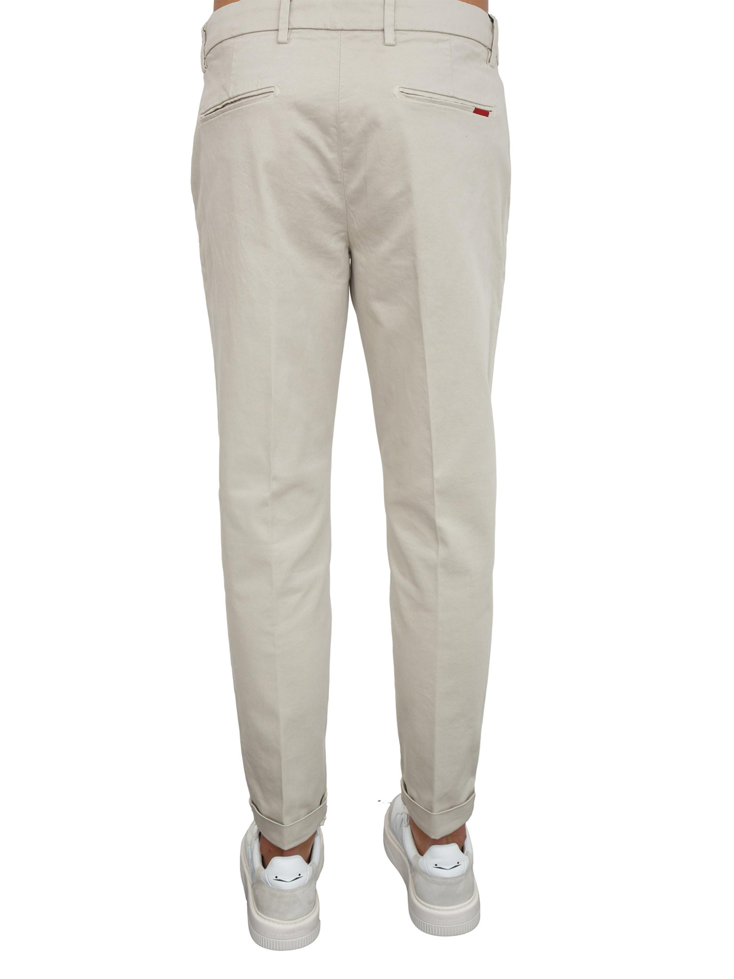 Pantaloni uomo Liu Jo realizzati in cotone stretch con piega stirata tasche laterali e tasche a filetto dietro. Design con risvolto sul fondo e chiusura con bottone e zip coperta. Il modello è alto 1.90m e indossa la taglia 48.