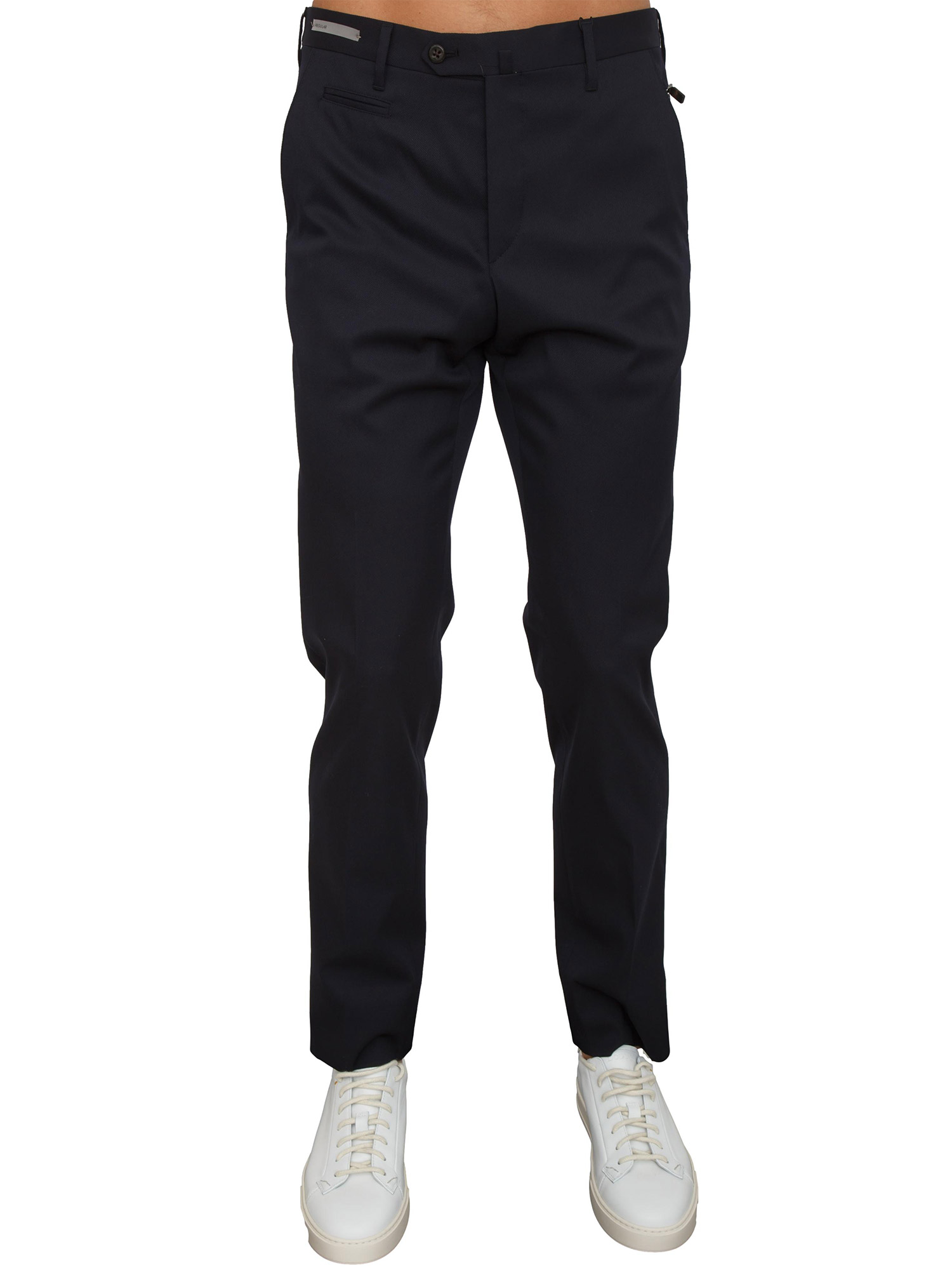 Pantaloni Corneliani realizzati in misto lana con vestibilità regular. Design pulito e raffinato, caratterizzato da tasche laterali e a filett, passanti in vita e chiusura con zip nascosta e bottone. Il modello è alto 1.90m e indossa la taglia 48.