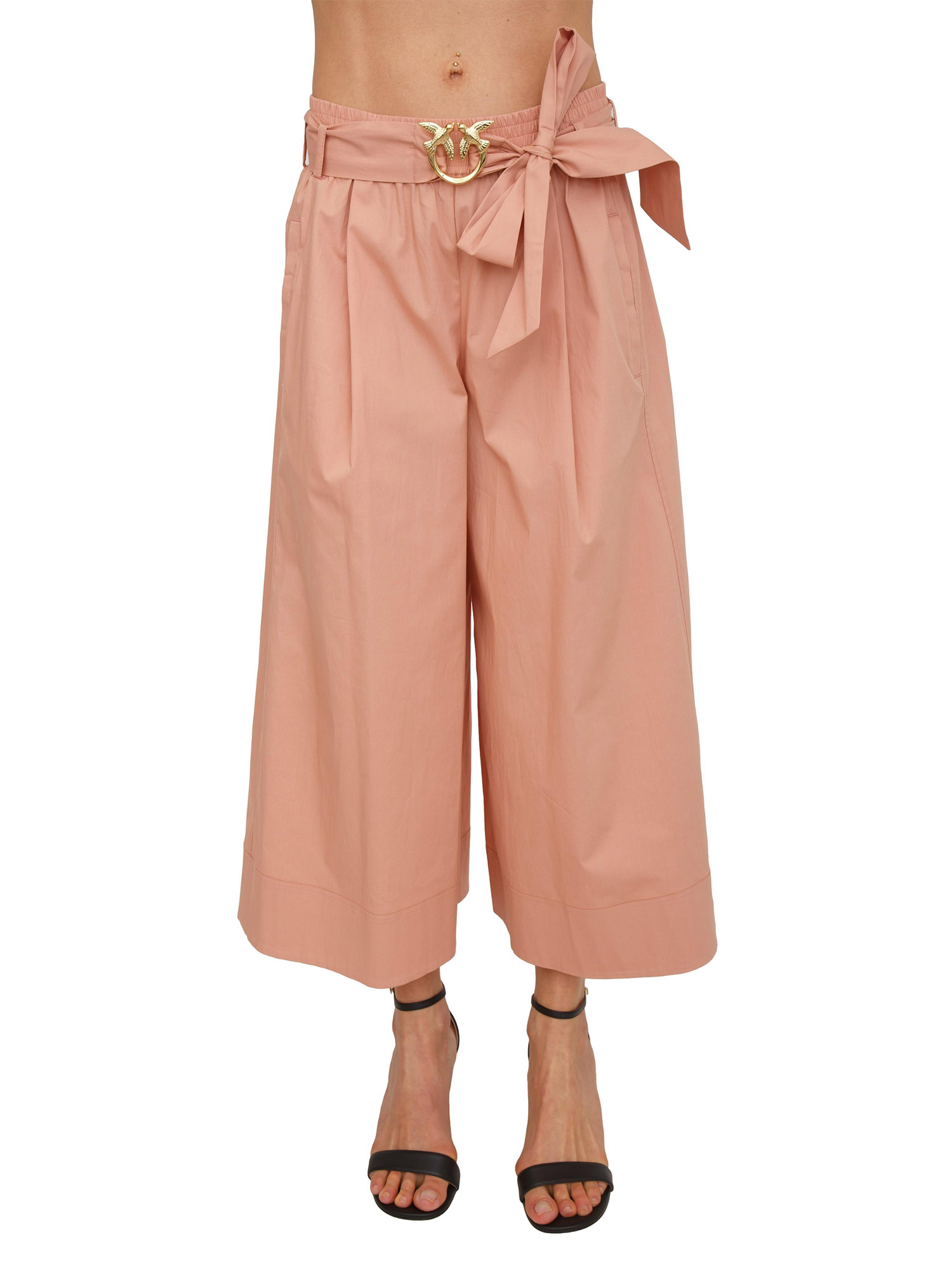 Pantaloni "Doreen" Pinko in cotone rosa con cintura logo oro