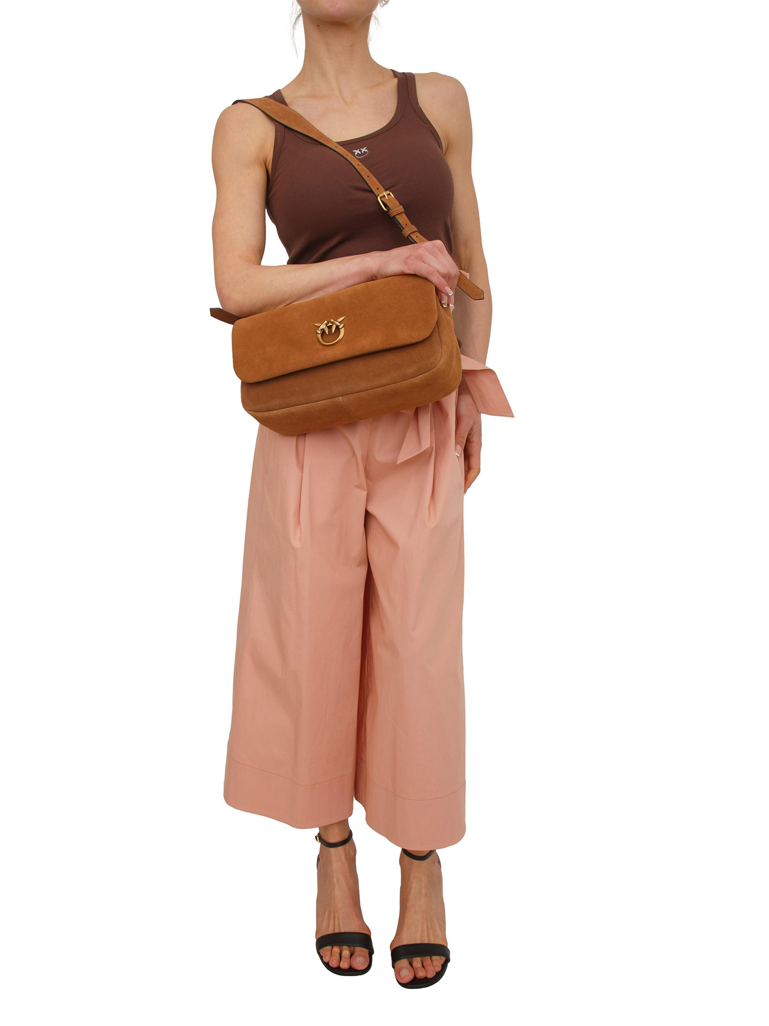 Pantaloni "Doreen" Pinko realizzati in cotone elasticizzato dalla linea dritta e corta alla caviglia. Design super glamour arricchito da cintura in tessuto con inserto logo Love Birds in metallo dorato. Tasche laterali e versatilità unica. La modella è alta 1.72 e indossa la taglia 38.