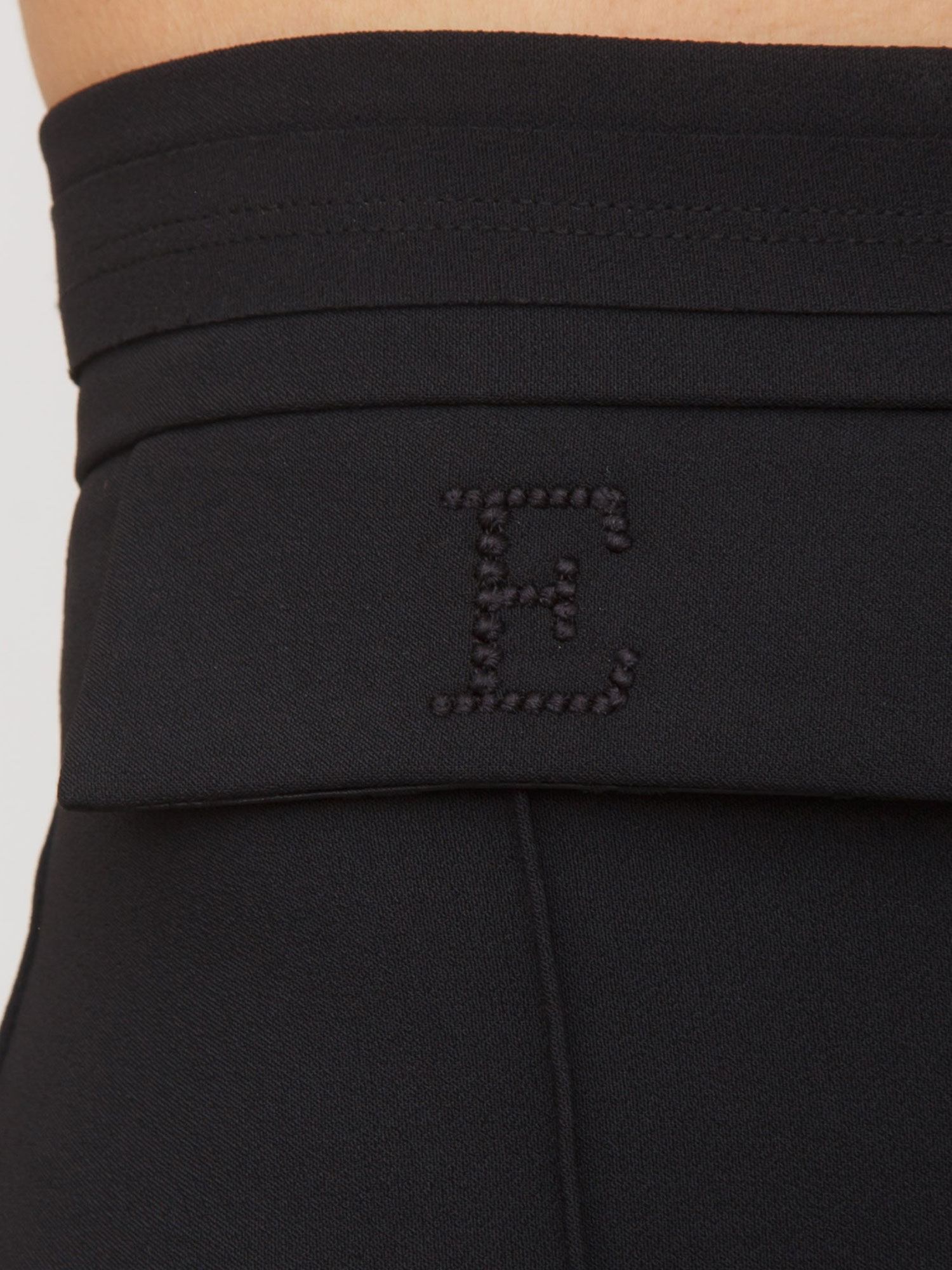 Pantaloni Elisabetta Franchi in doppio crêpe stretch. Hanno cuciture riportate esternamente, rifinite con tessuto a taglio vivo e impunture. Sul davanti, le patte sono impreziosite dal logo ricamato in filo e in tono. Vestibilità regular. Parte della collezione Essential, per costruire il guardaroba perfetto. La modella è alta 1.72 e indossa la taglia 38.