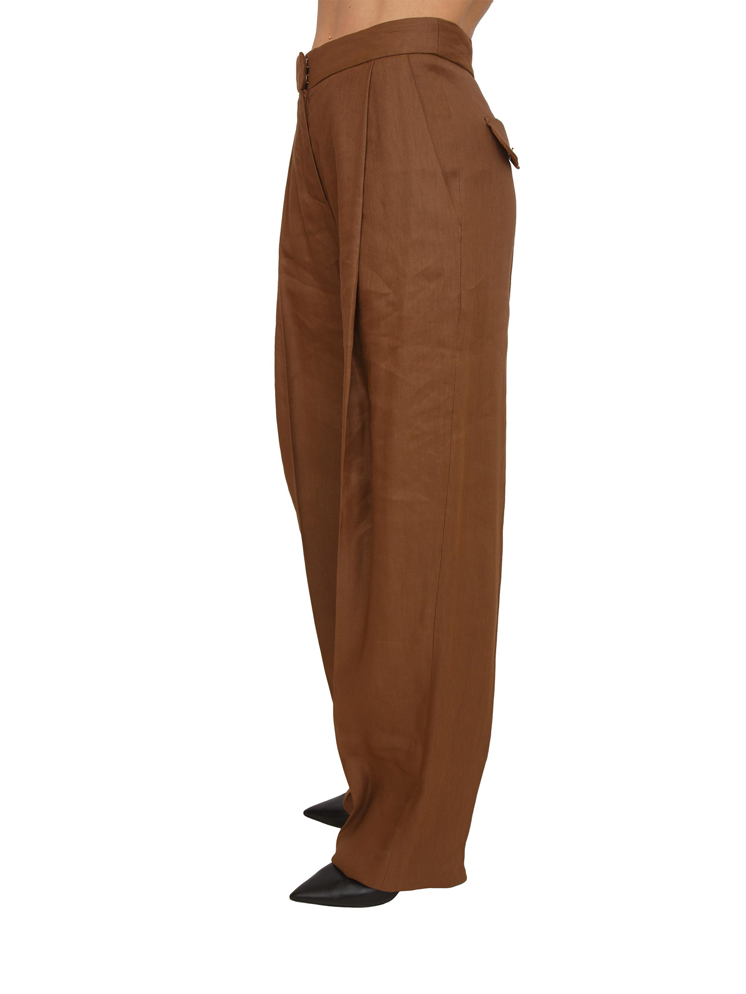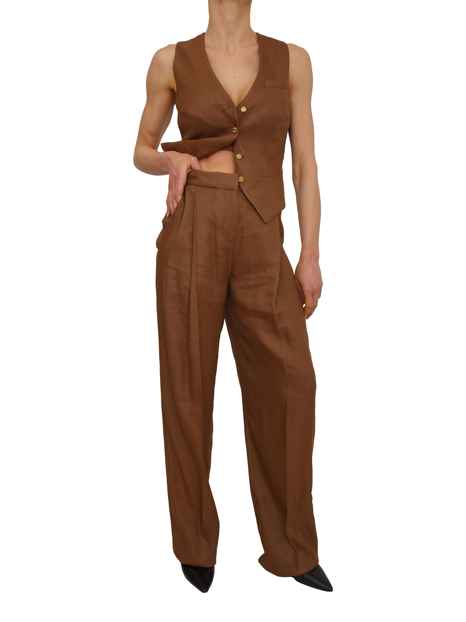 Pantaloni Elisabetta Franchi in misto lino marrone