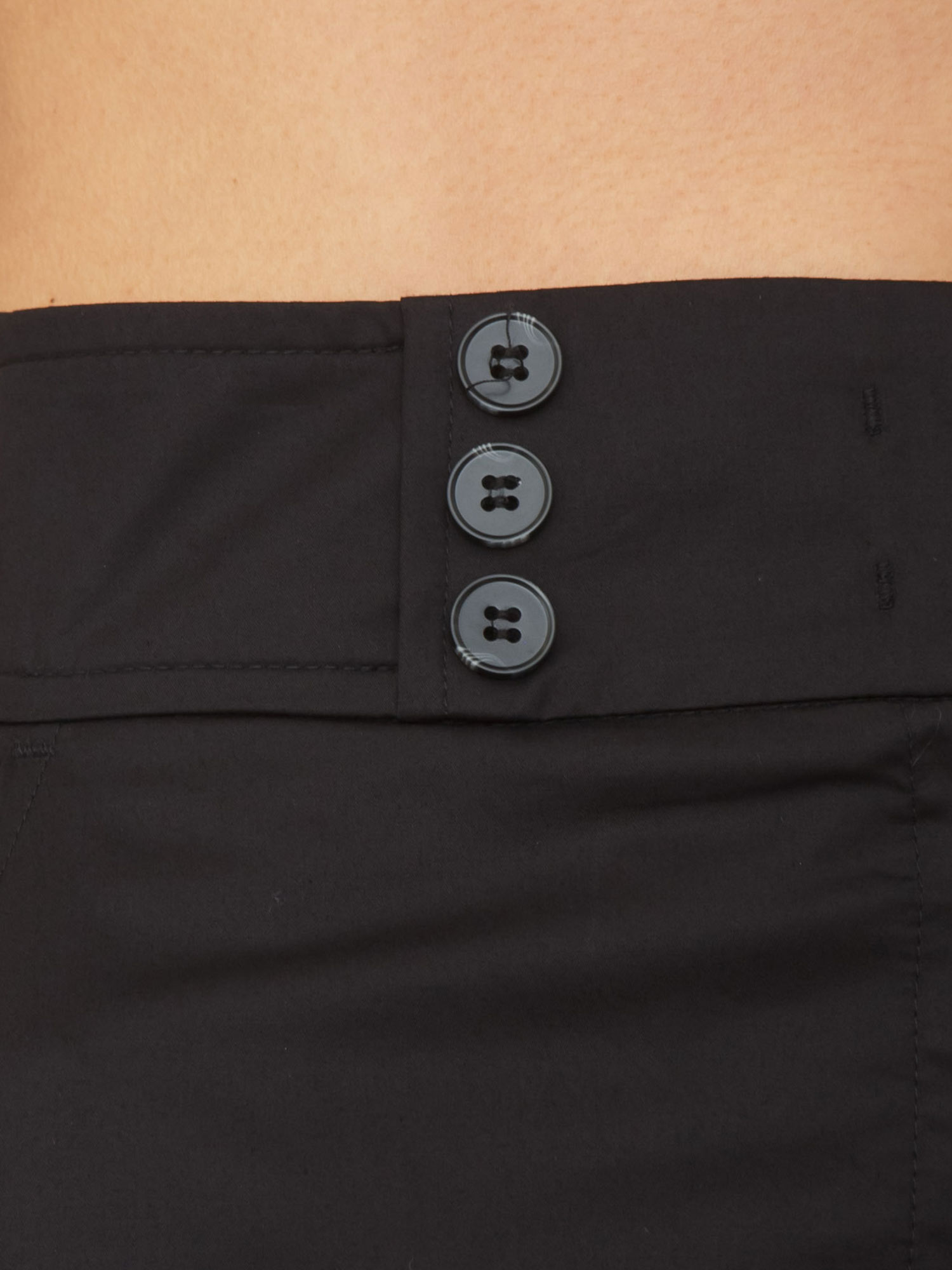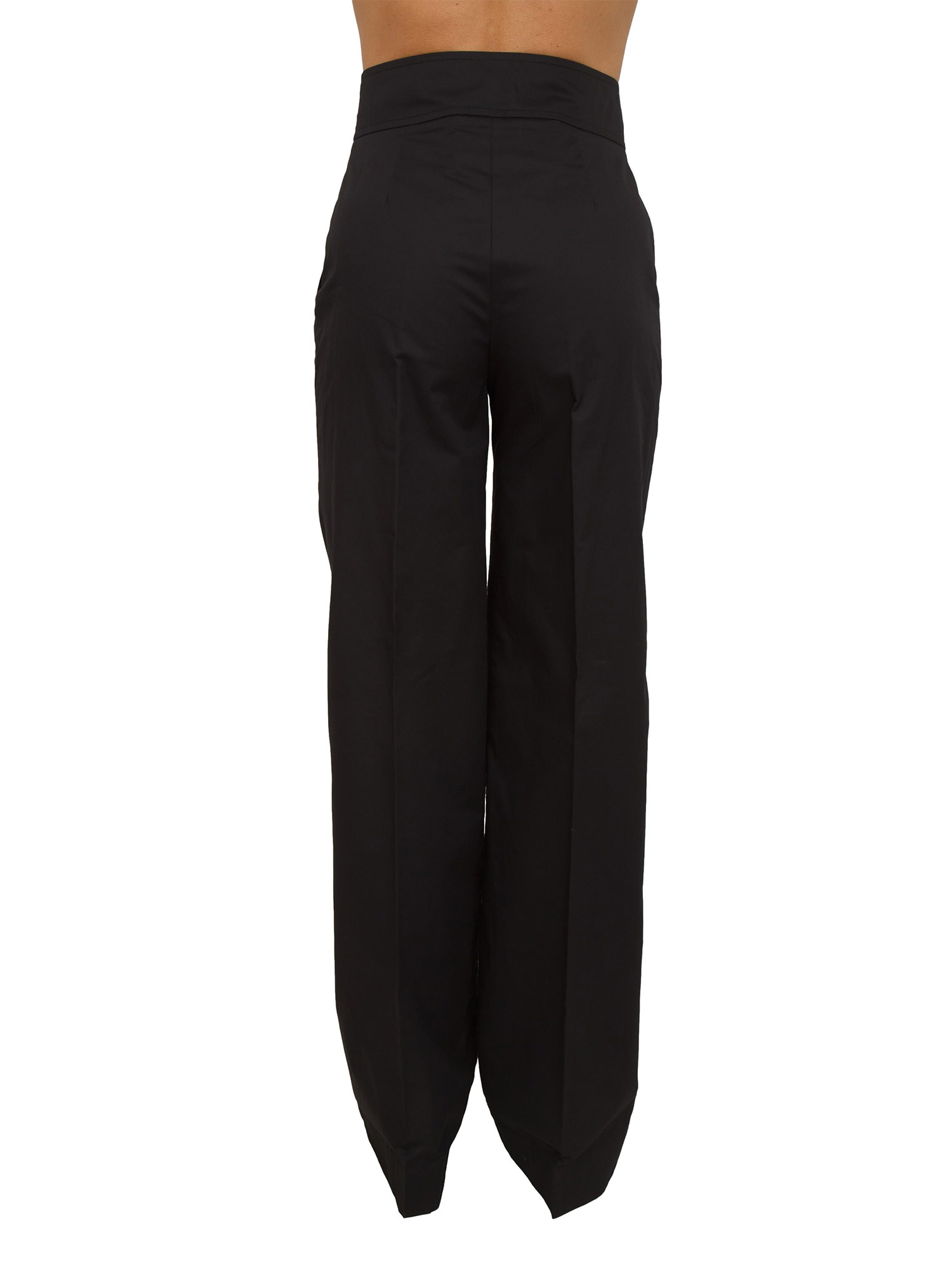 Raffinato pantalone Emon Nenette a gamba larga dalla linea pulita e contemporanea. Vita alta definita da un cinturino sagomato impreziosito lateralmente da bottoni che richiamano uno stile marinaro chic e stiratura centrale che slancia la figura. La modella è alta 1.72 e indossa la taglia 38.