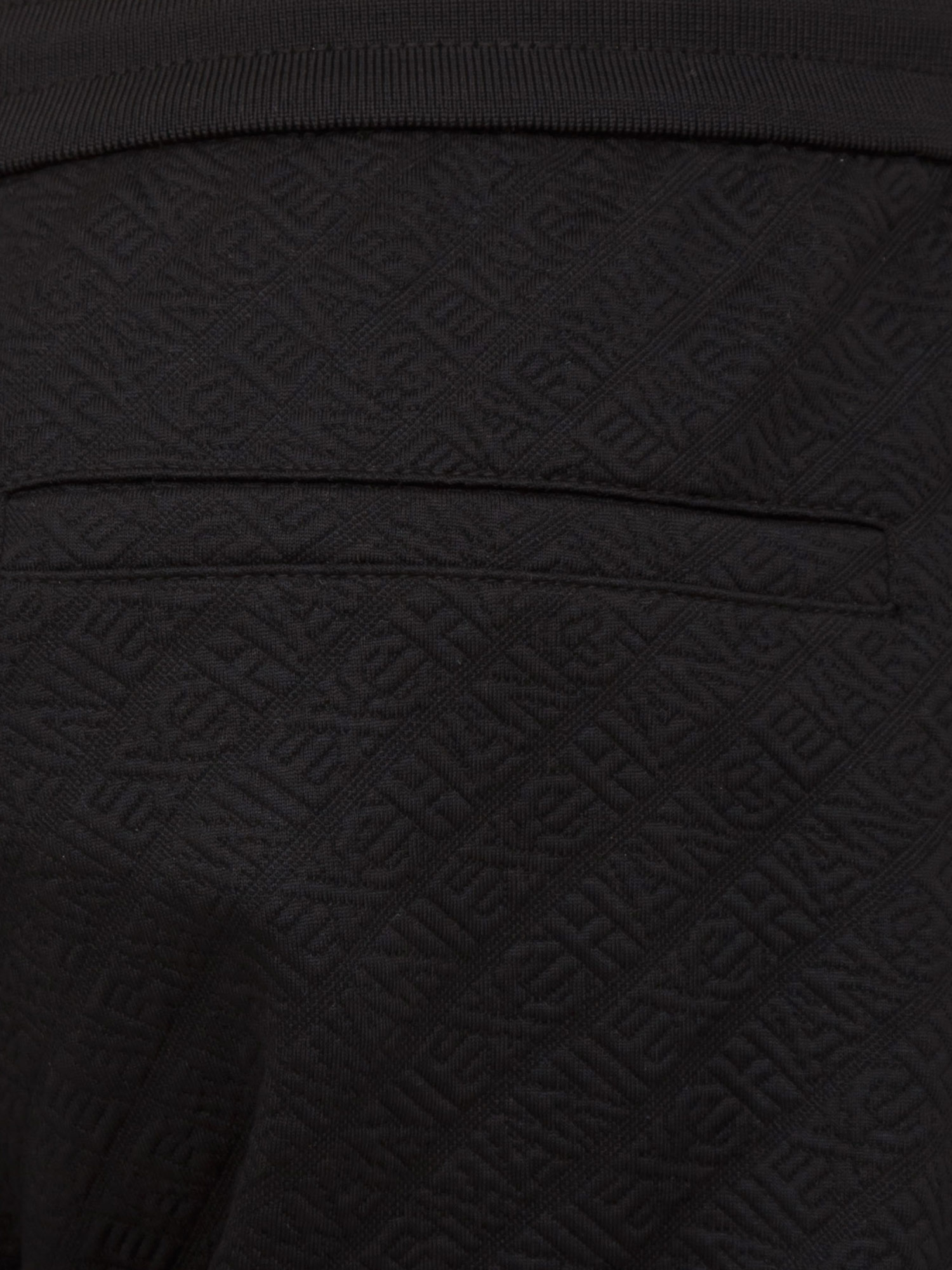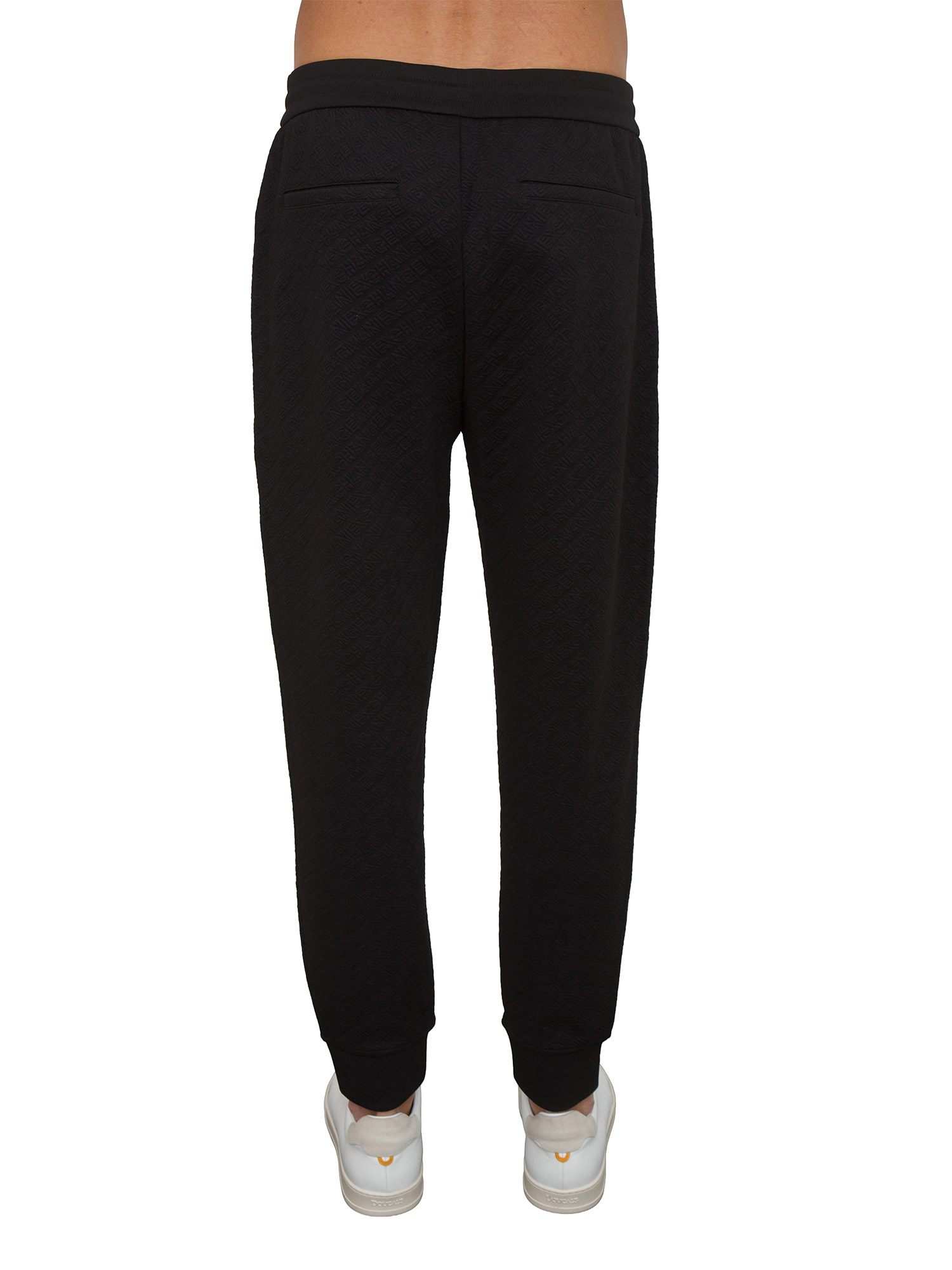 Pantaloni jogger uomo Armani Exchange realizzati in tessuto elasticizzato con logo jacquard all over tono su tono. Modello con coulisse in vita, lavorazione a costine elasticizzata sui fondi e tasca a filetto sul retro. Il modello è alto 1.90m e indossa la taglia M.