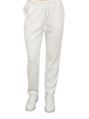 Pantaloni jogging Liu Jo donna relizzato con materiale stretch, elastico con coulisse in vita, tasche sui fianchi e lettering LJ in metallo sul retro. Ideali per i tuoi look sportivi quotidiani.