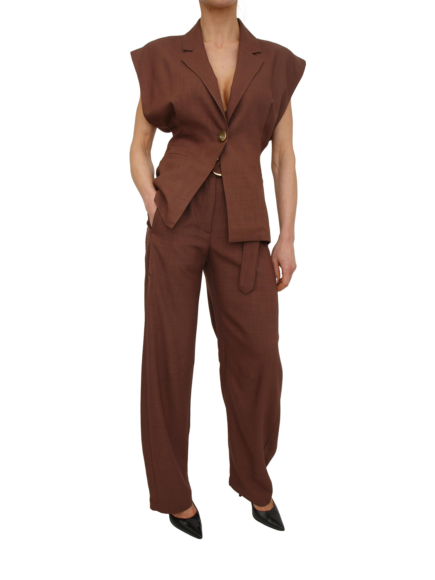 Pantaloni Lexya Pinko in tessuto panama marrone