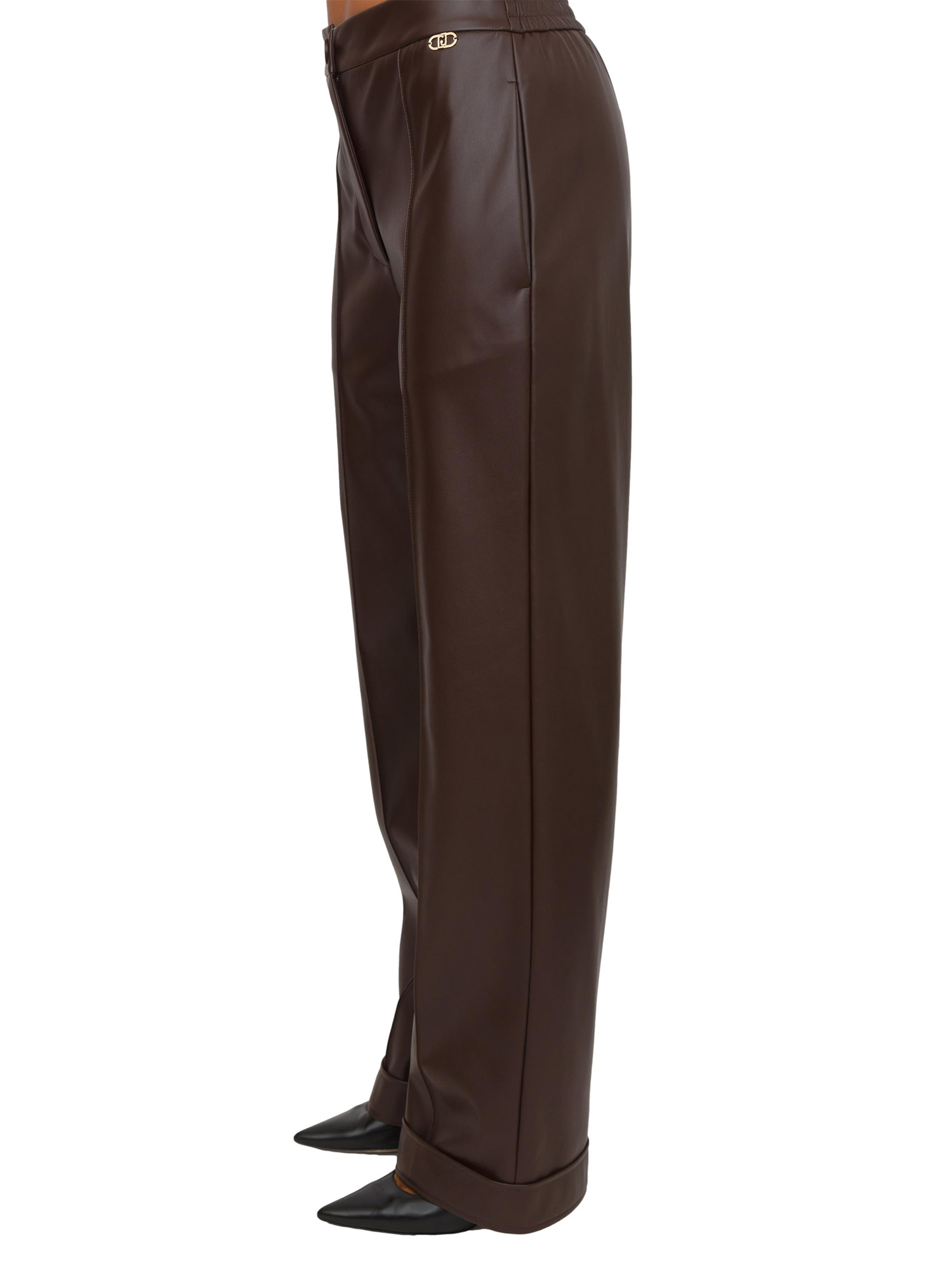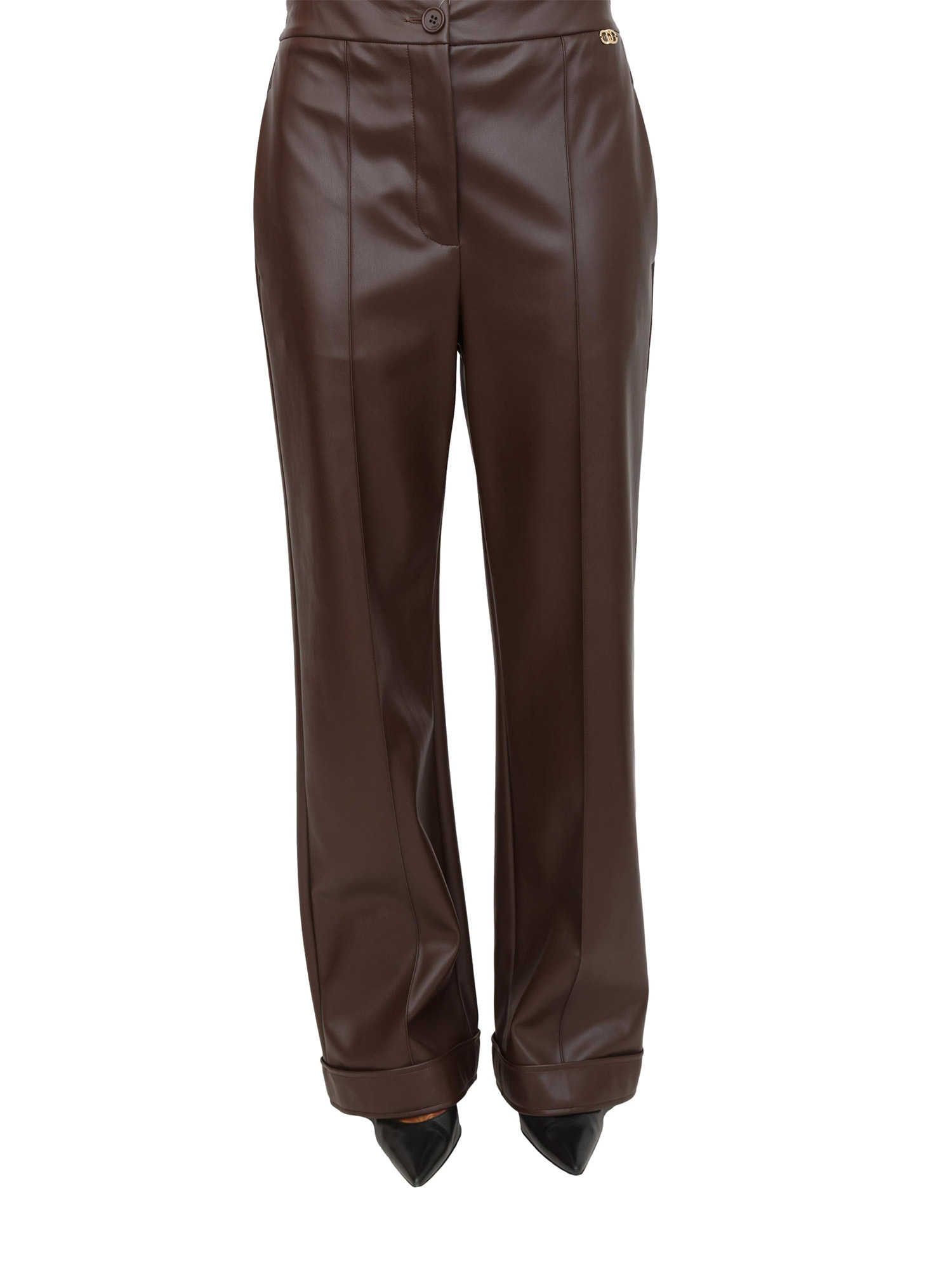 Pantaloni Liu Jo donna in tessuto spalmato effetto pelle marrone